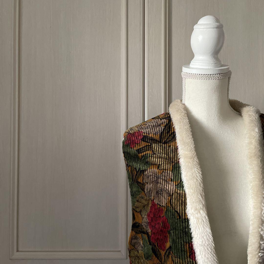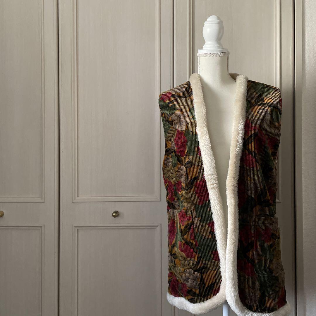 花柄 ボア ジレ ベスト ベロア ロング かわいい レトロ 昭和 個性派
