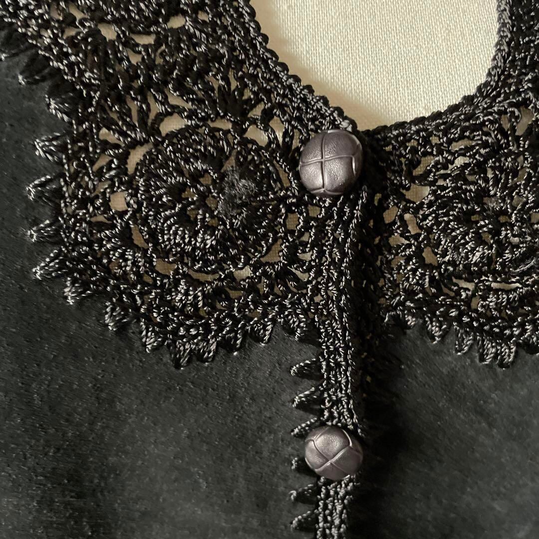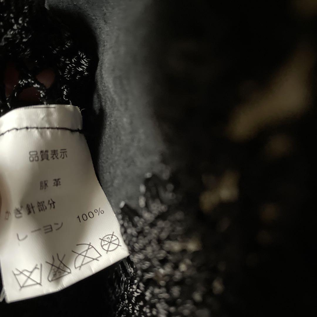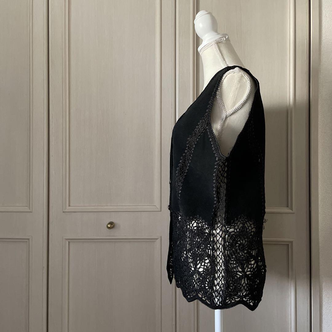/ レザー レース 鍵編み 本革 豚革 ジレ ベスト ブラック 黒 クロ
