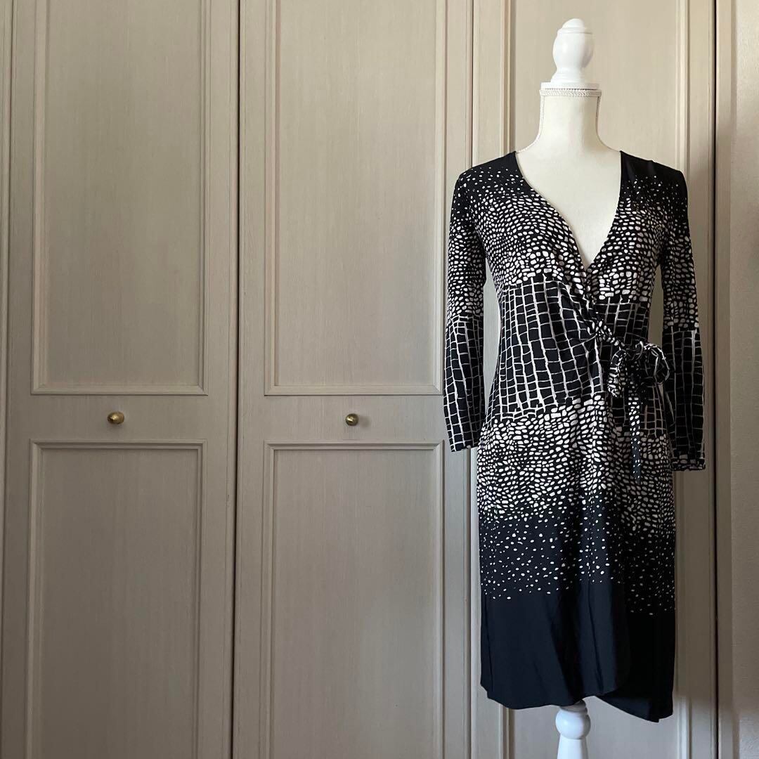 総柄 ワンピース カシュクール ストレッチ セクシー 上品 エレガント