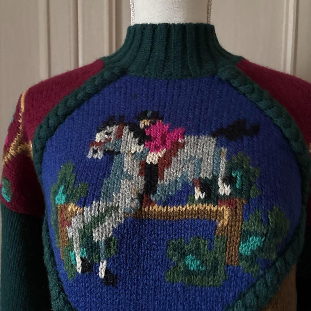 45 総柄 刺繍 ニット セーター 長袖 かわいい 昭和 レトロ vintage