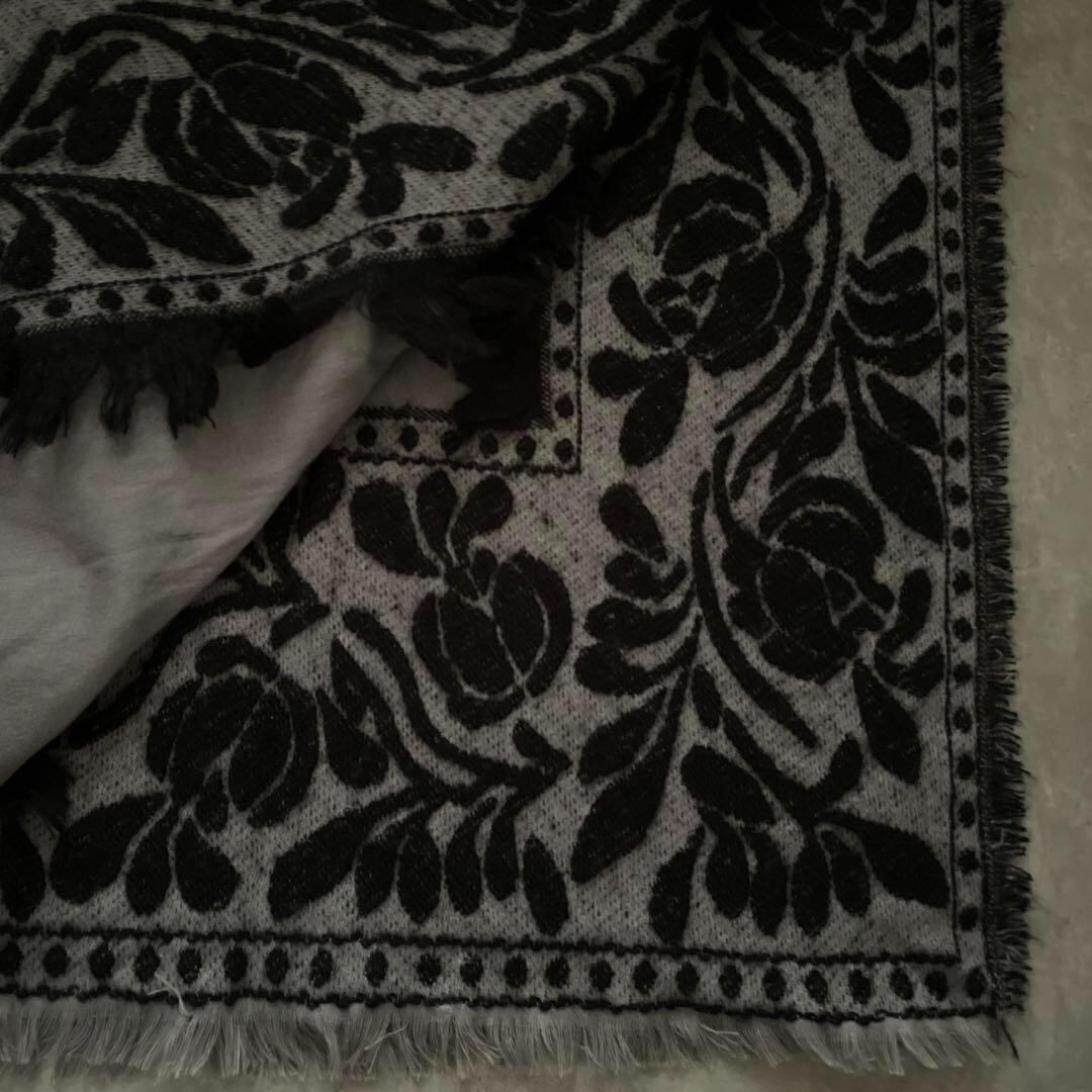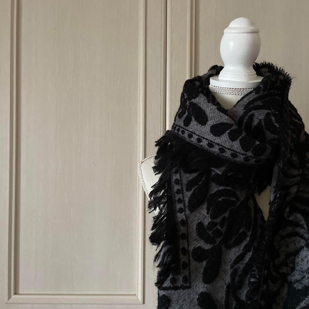 / SHIPS シップス 花柄 大判 ストール マフラー モダン ペイズリー 黒