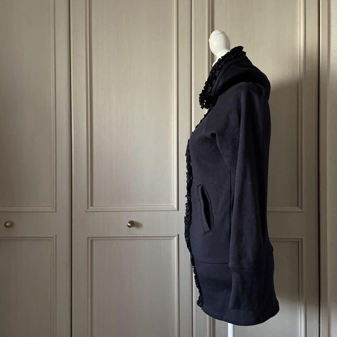 70 masami satomi フリル フード パーカー ネイビー L 可愛い