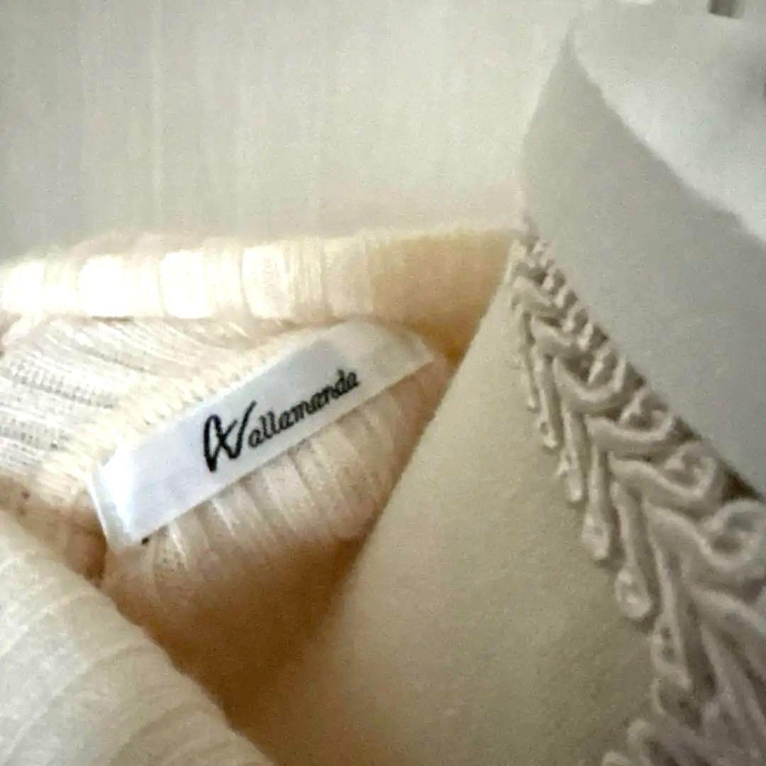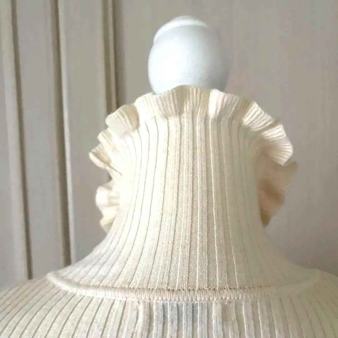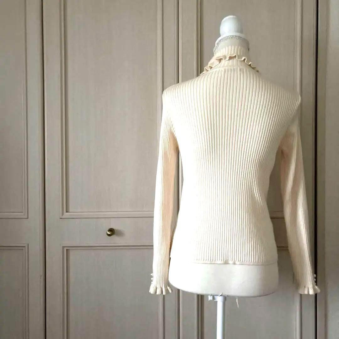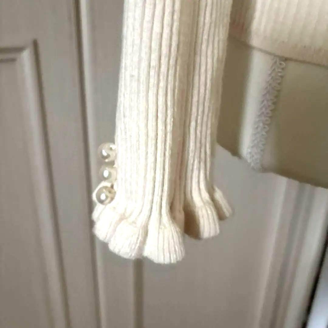 U パール ニット セーター シャツ 長袖 フリル ケーブル 白 ホワイト