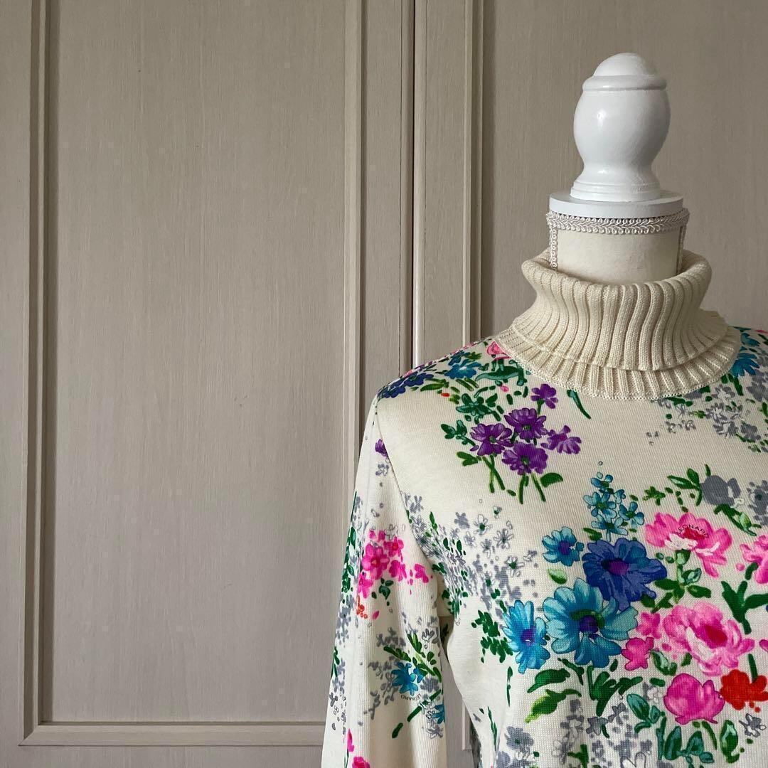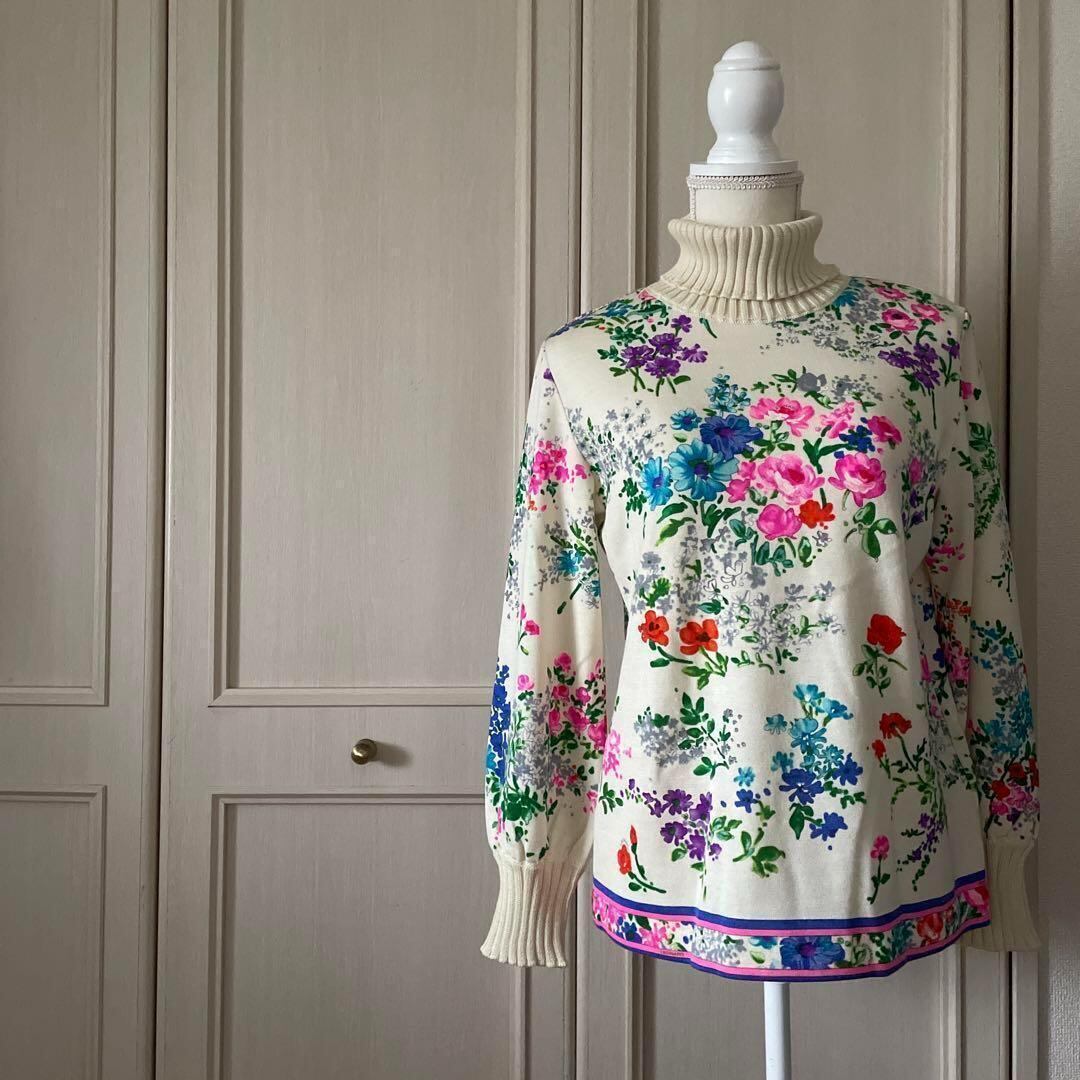 V レオナール LEONARD ハイネック 花柄 ニット セーター 長袖