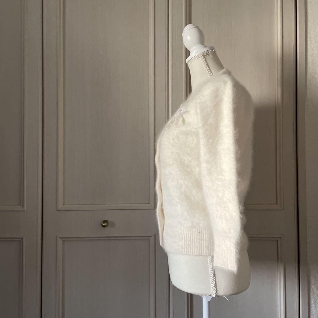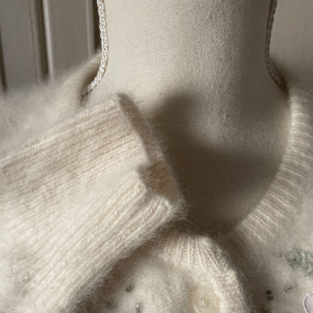 R 花柄 刺繍 カーディガン アンゴラ ふわふわ かわいい お嬢様 長袖