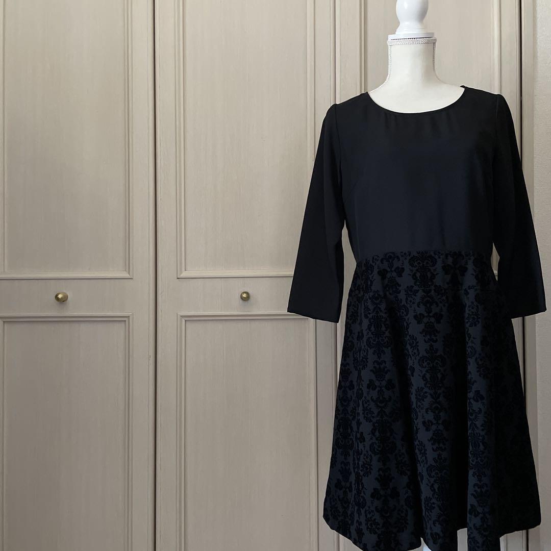 R ストラ stola 花柄 ワンピース L 40 ブラック 黒 BLACK