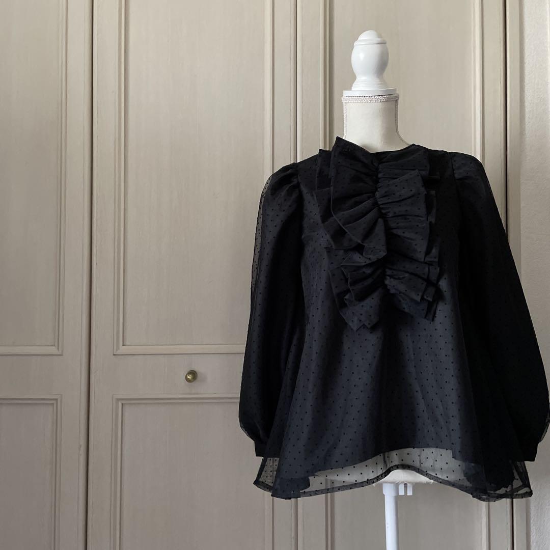 10 lieulien ドット フリル ブラウス シャツ トップス ブラック 黒