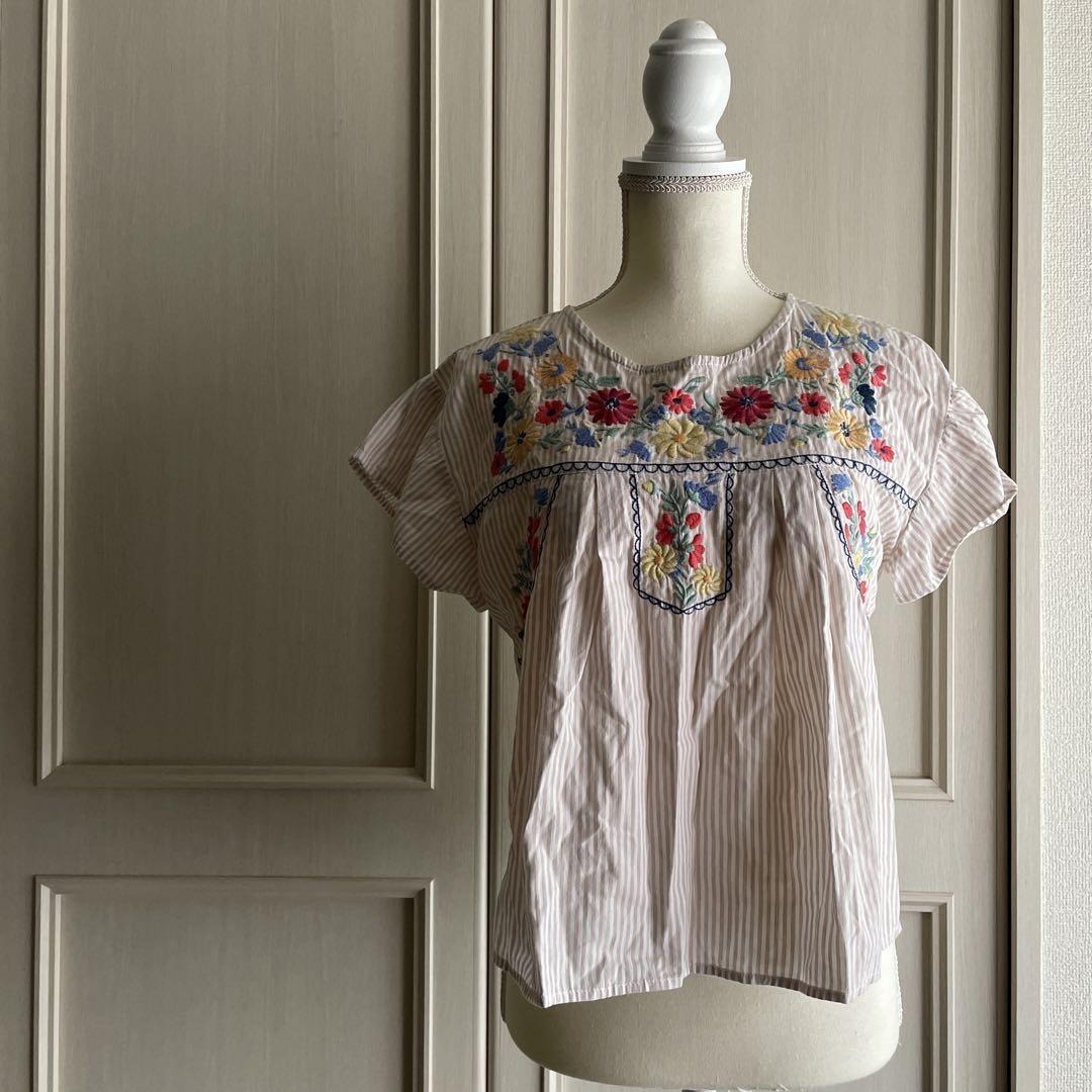 35 ParAvion パラビオン 花柄 ブラウス シャツ 刺繍 半袖