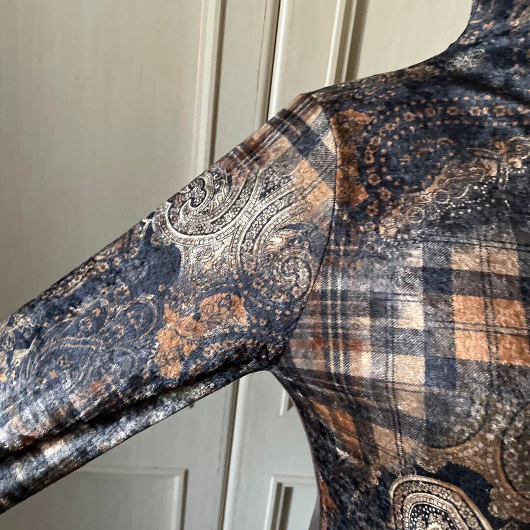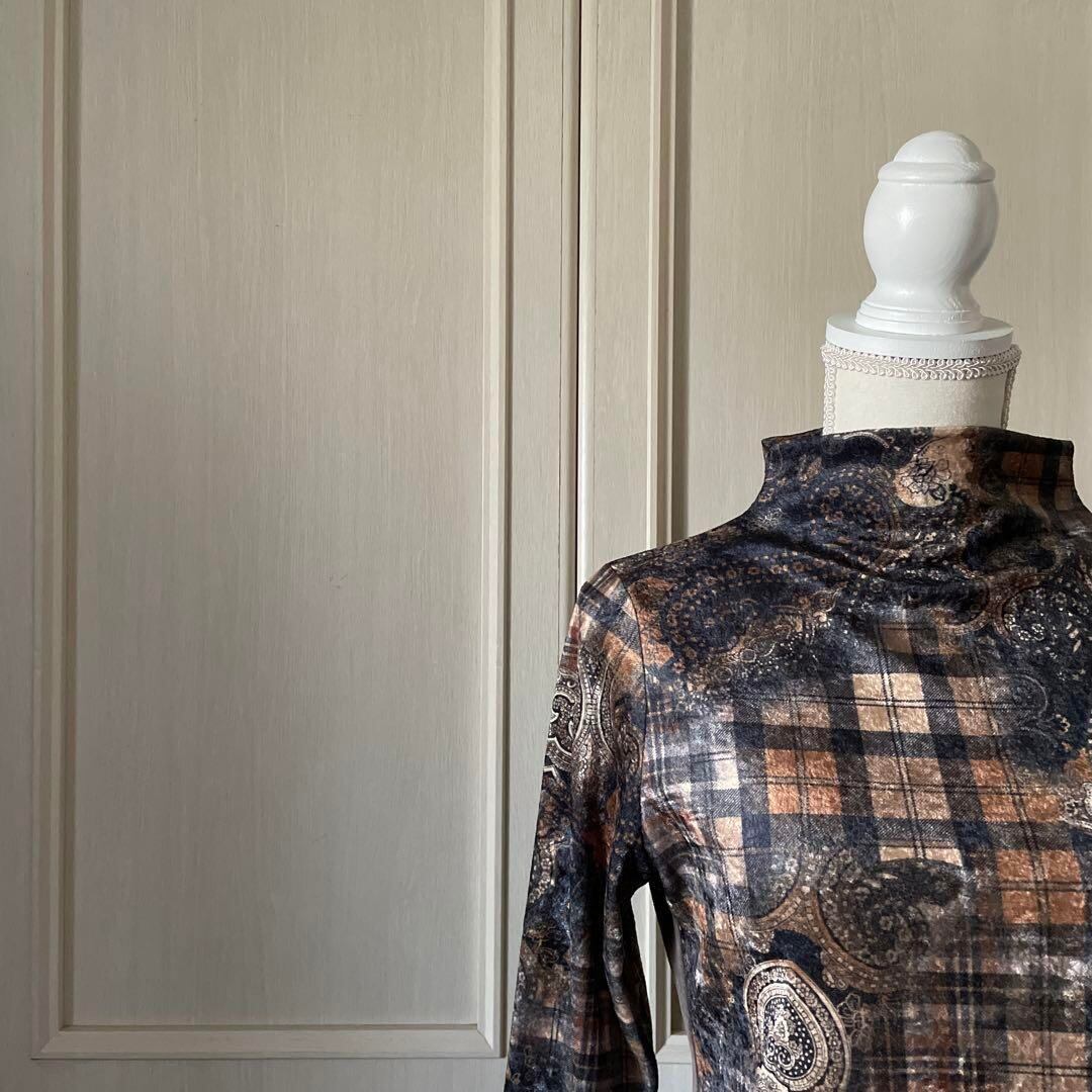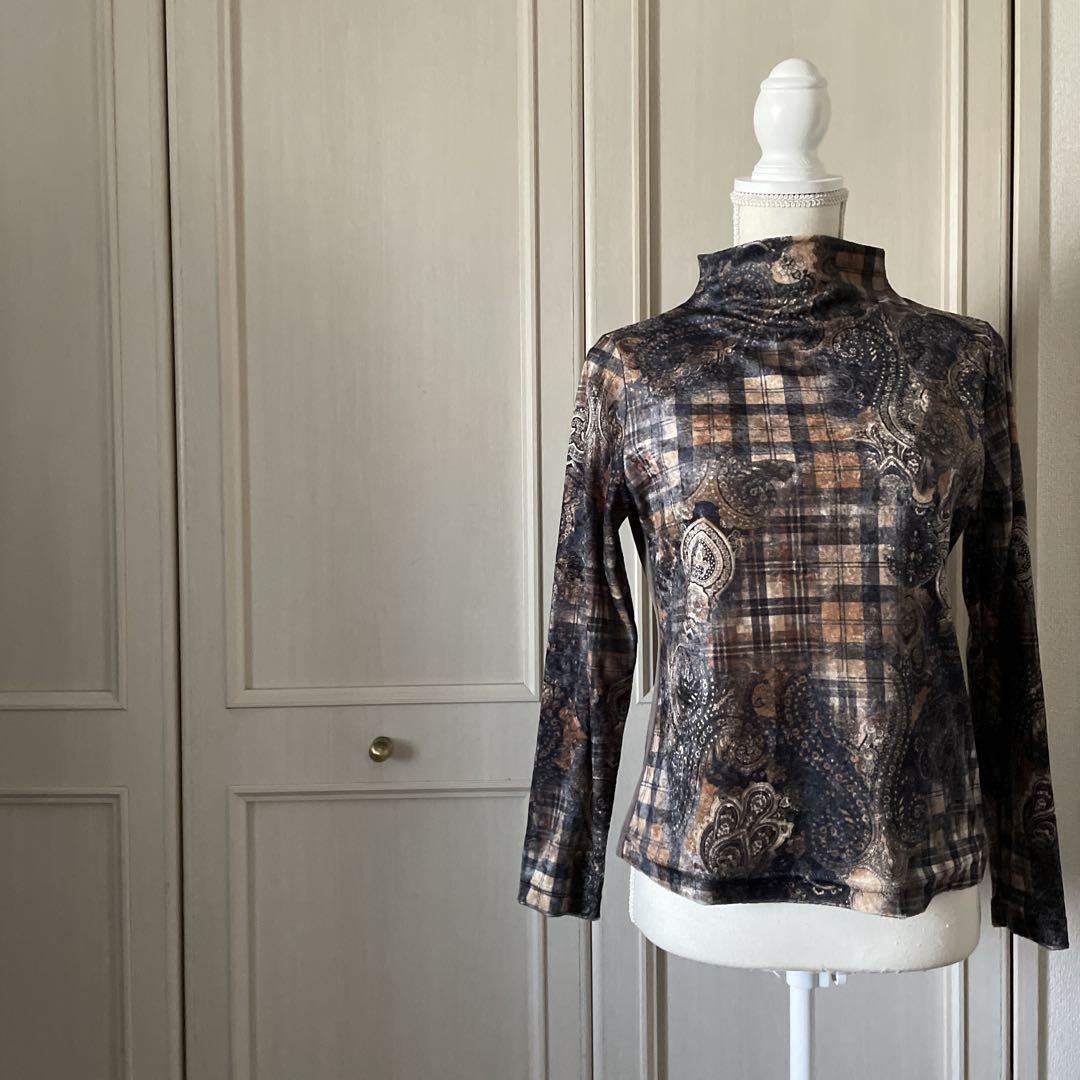 Y ハイネック 総柄 ペイズリー ニット セーター シャツ トップス おしゃれ