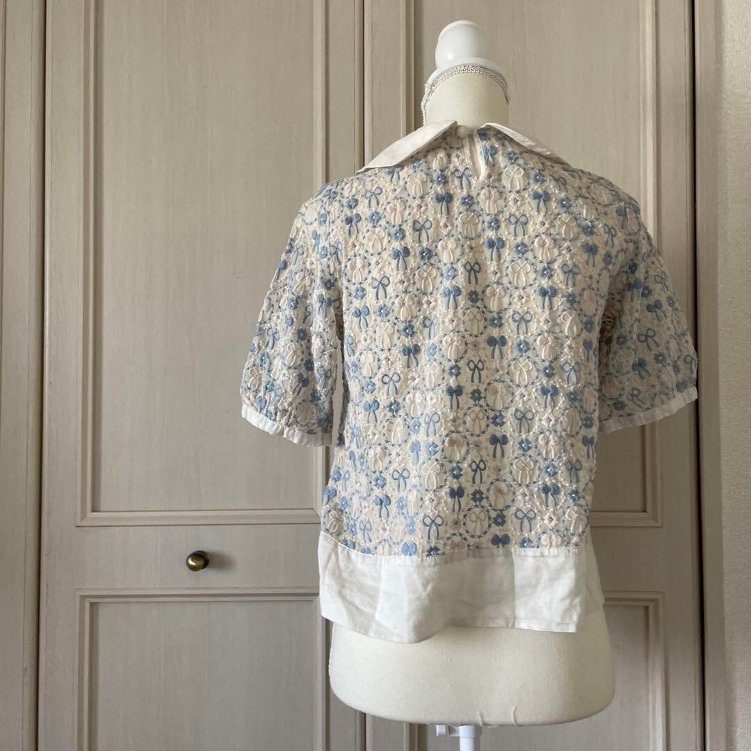 51 ネセセア nesessaire 刺繍 花柄 総柄 ブラウス シャツ 半袖