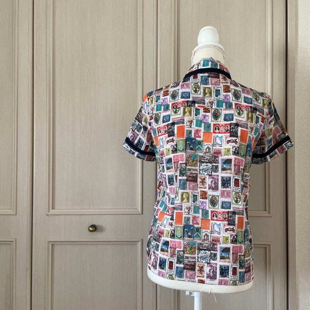 - アリスアンドオリビア alice+olivia 総柄 切手 ブラウス シャツ トップス 半袖