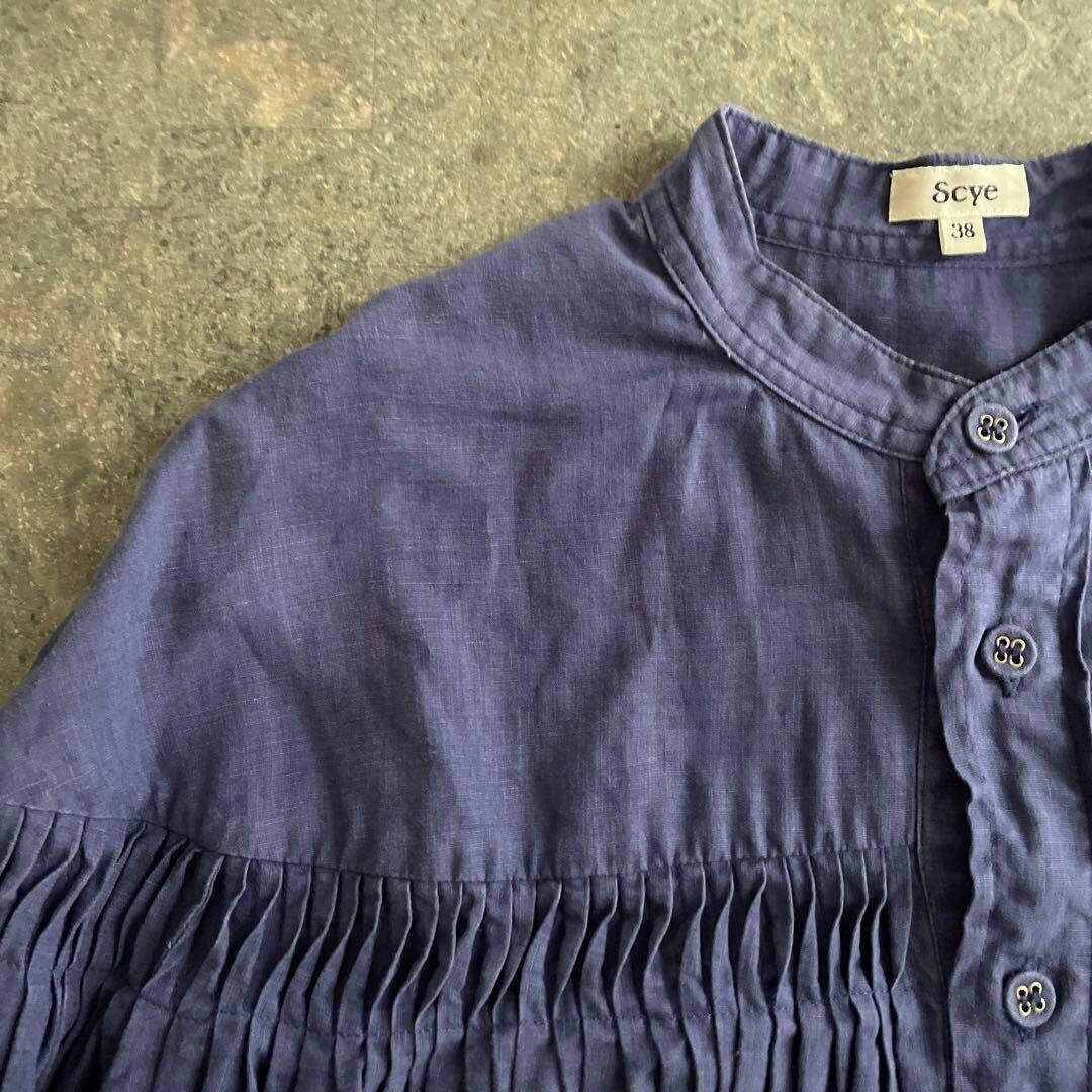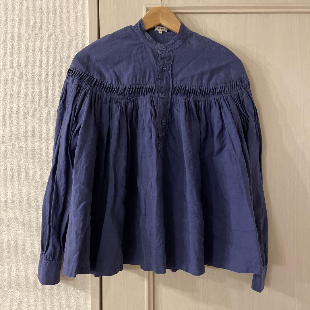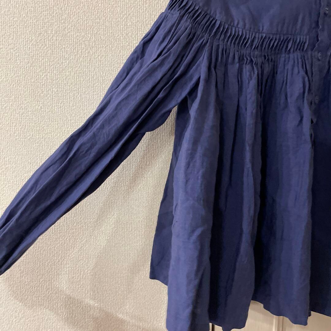 X scye リネン ブラウス シャツ トップス 長袖 リネン 麻 ネイビー 紺