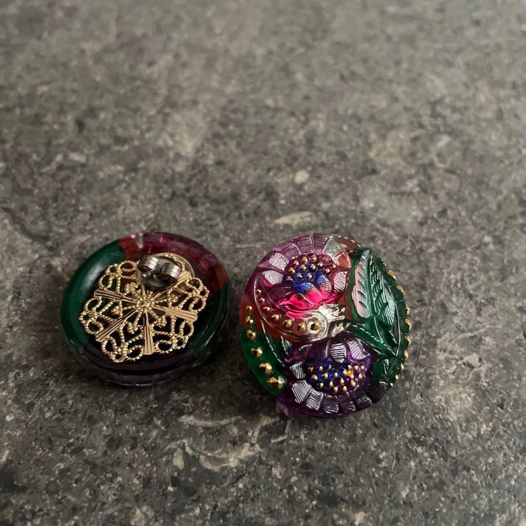 花柄 フラワー ピアス 椿 ツバキ つばき クリア ヴィンテージ アンティーク