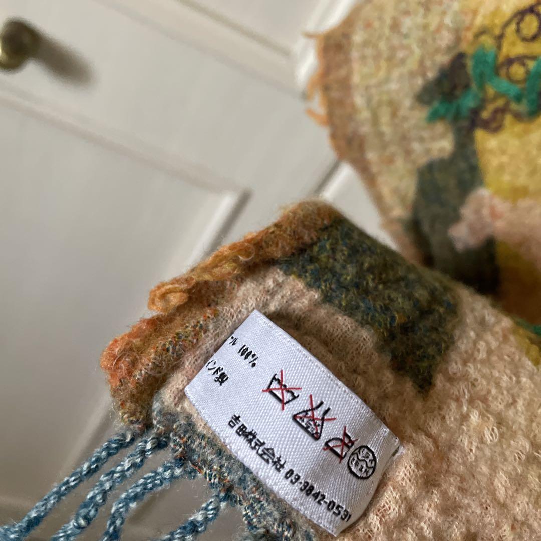 総柄 大判 刺繍 ウール マフラー 可愛い 花柄 ナチュラル