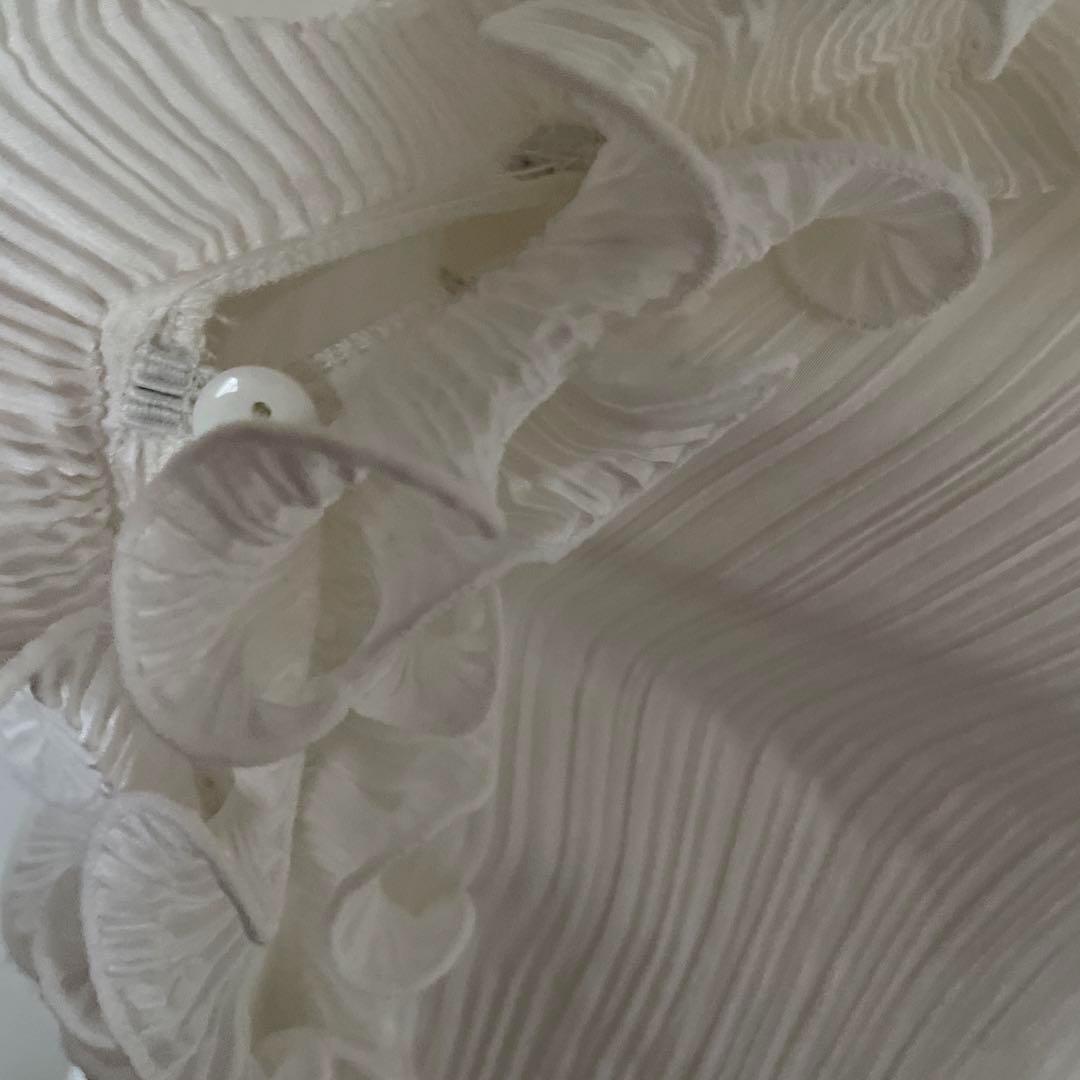 6 フリル ブラウス シャツ トップス プリーツ カーディガン 白 ホワイト