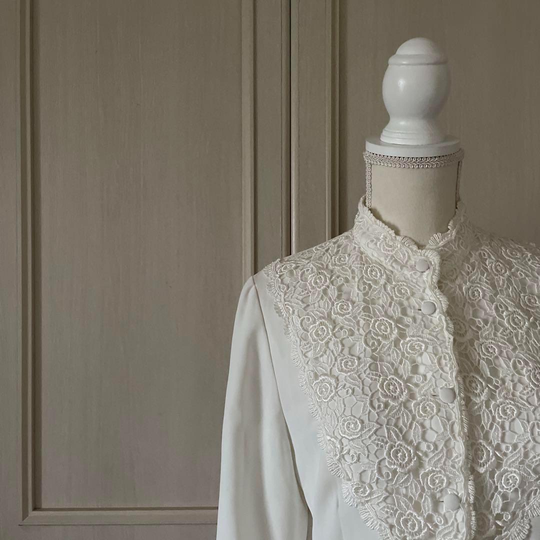 A 花柄 総柄 レース レトロ ヴィンテージ 刺繍 ブラウス シャツ トップス