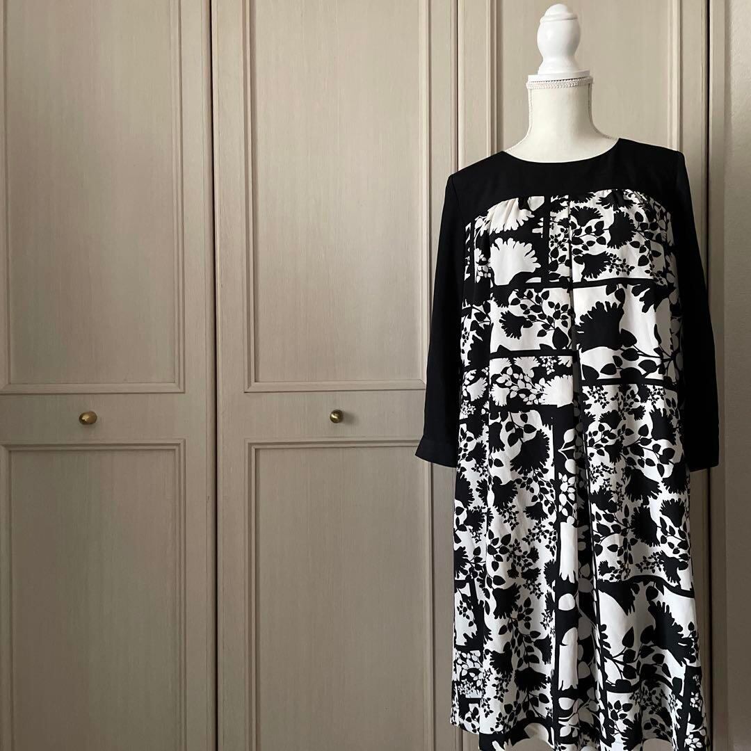 48 ローラアシュレイ LAURA ASHLEY 花柄 ワンピース 総柄 黒 白