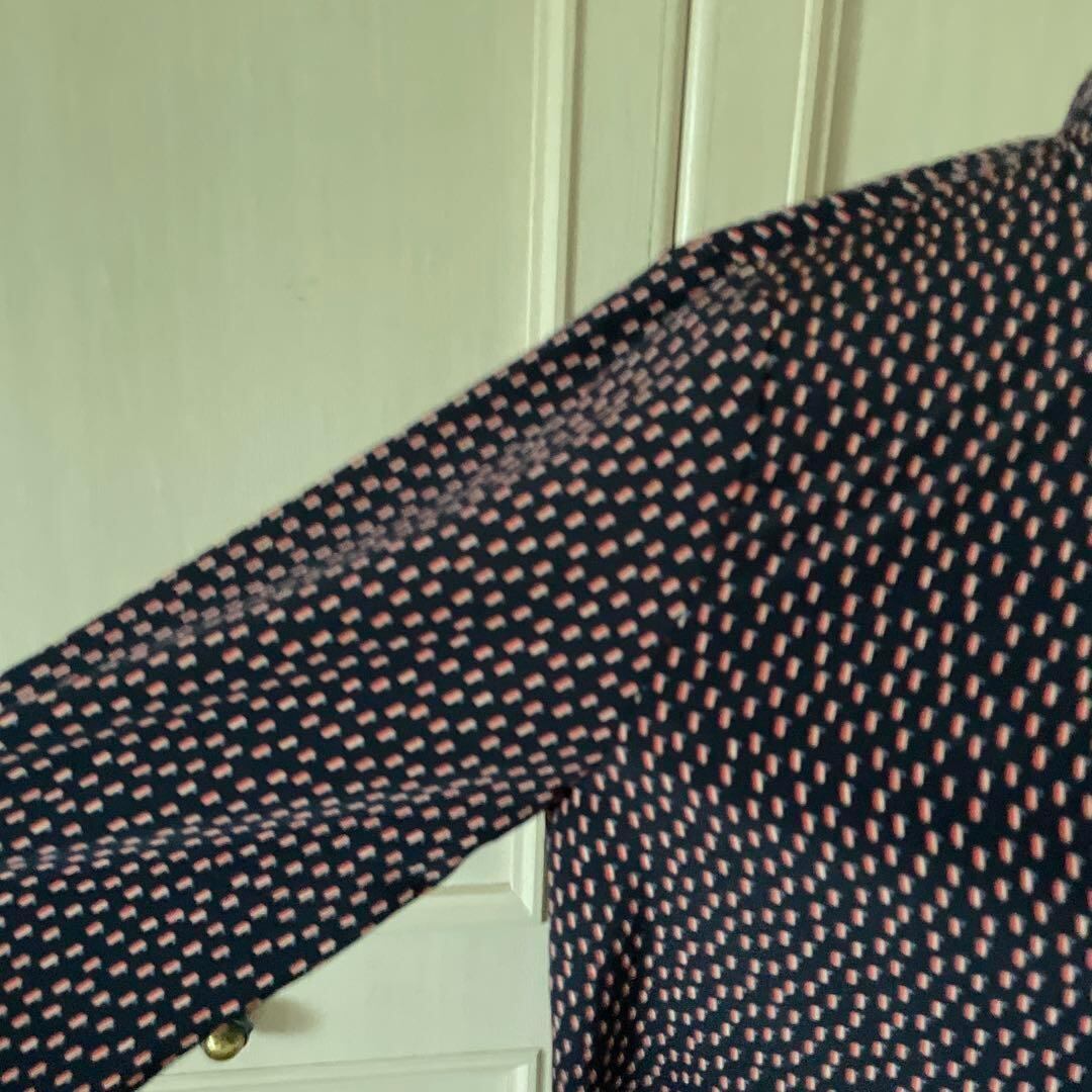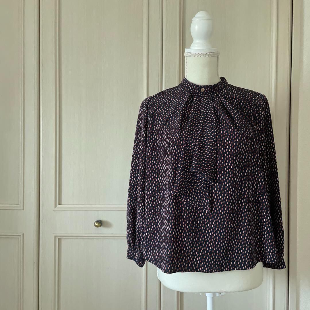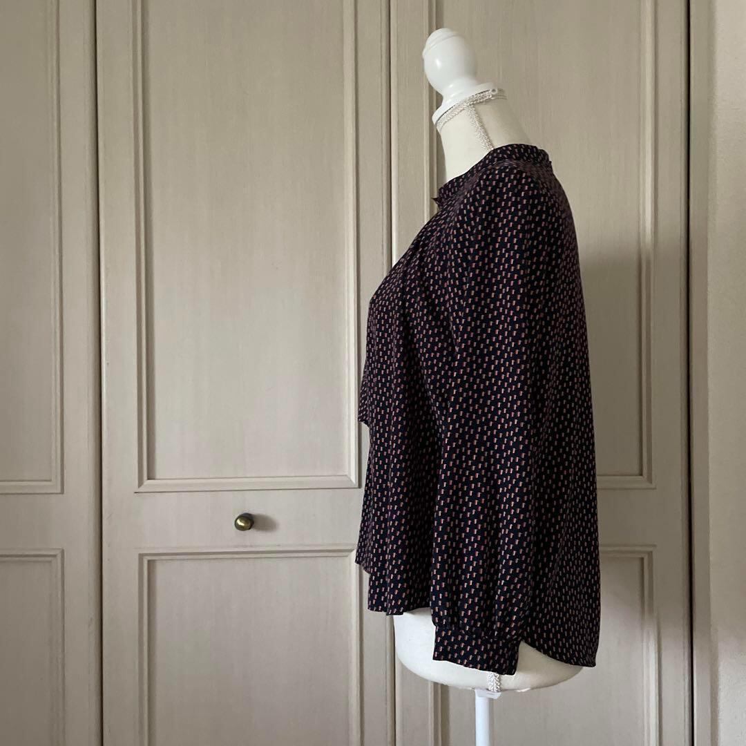 I SHIPS シップス ボウタイ 総柄 長袖 ネイビー ブラウス シャツ38