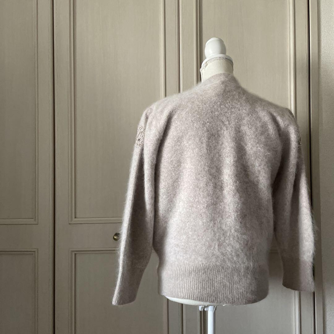 X 花柄 刺繍 アンサンブル パール カーディガン ニット セーター 長袖