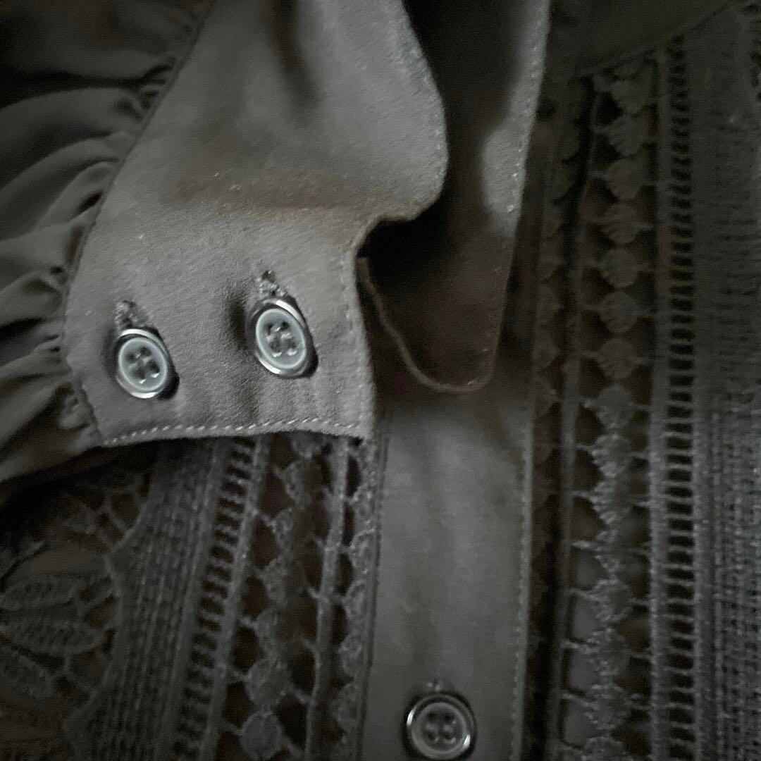 G レース ブラウス シャツ トップス 長袖 黒 ブラック 花柄