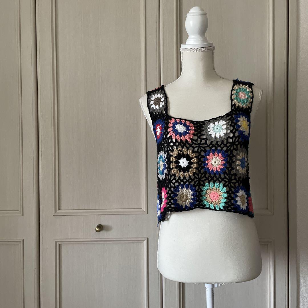 Q クロシェ編み 手編み ニット ビスチェ トップス キャミ ベスト