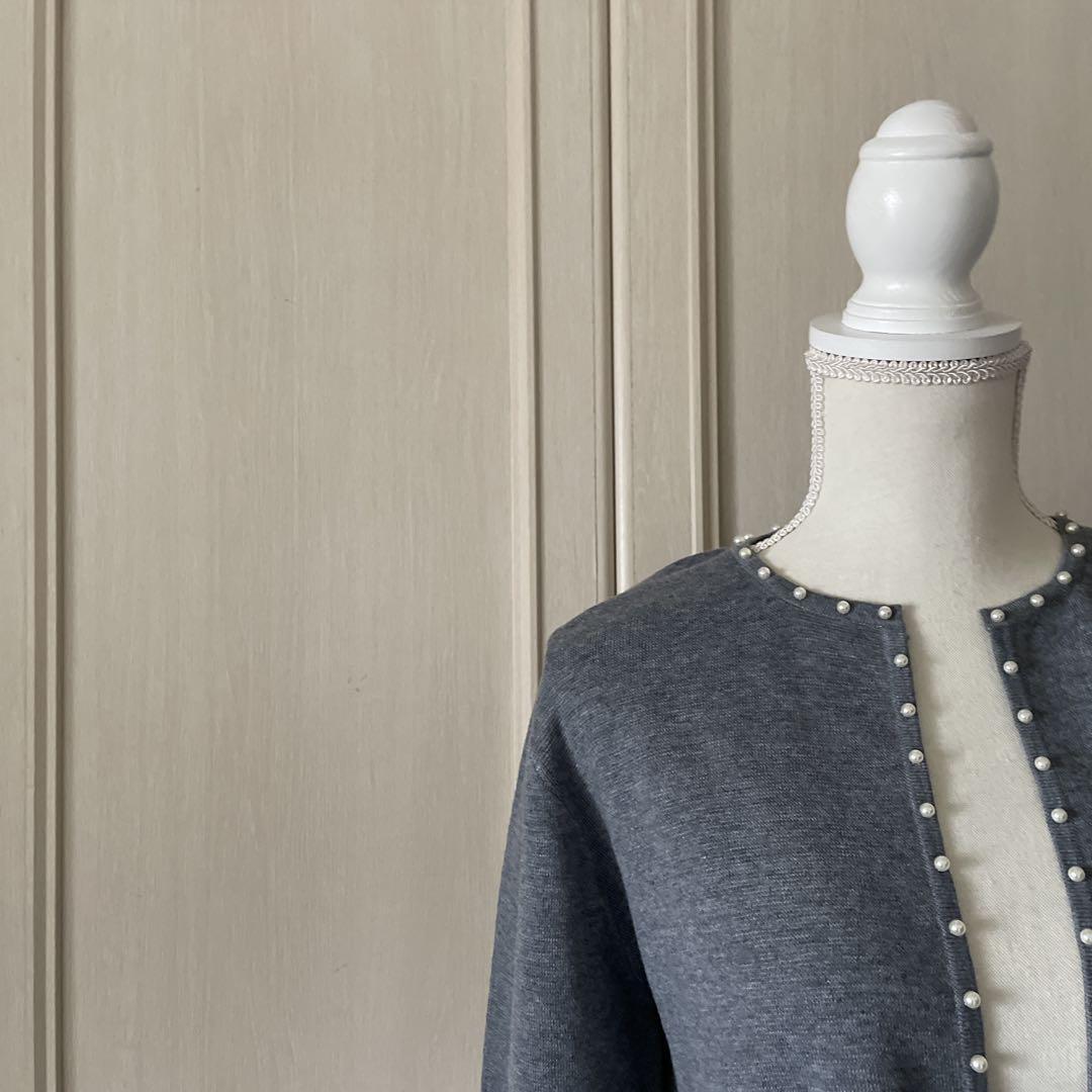 Q アトリエシックス atelier six パール カーディガン 羽織 グレー