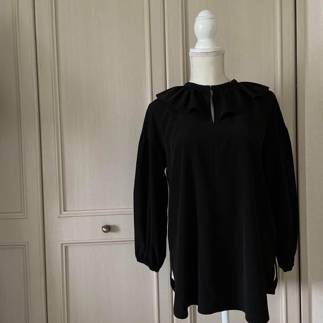 tiara ティアラ フリル 無地 ブラック ブラウス シャツ トップス 長袖 可愛い