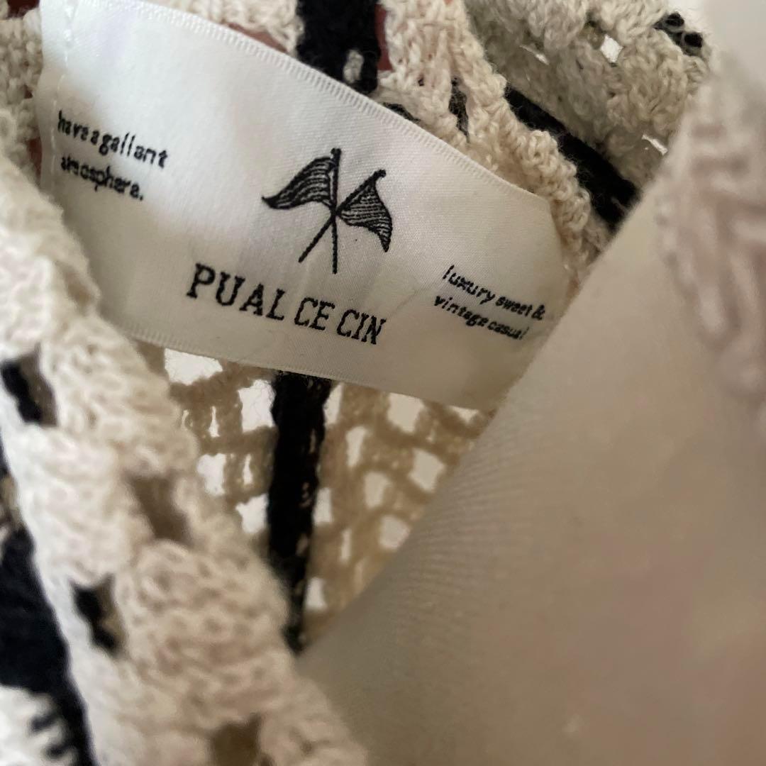 E ピュアルセシン PUAL CE CIN 鍵編み ニット カーディガン 刺繍