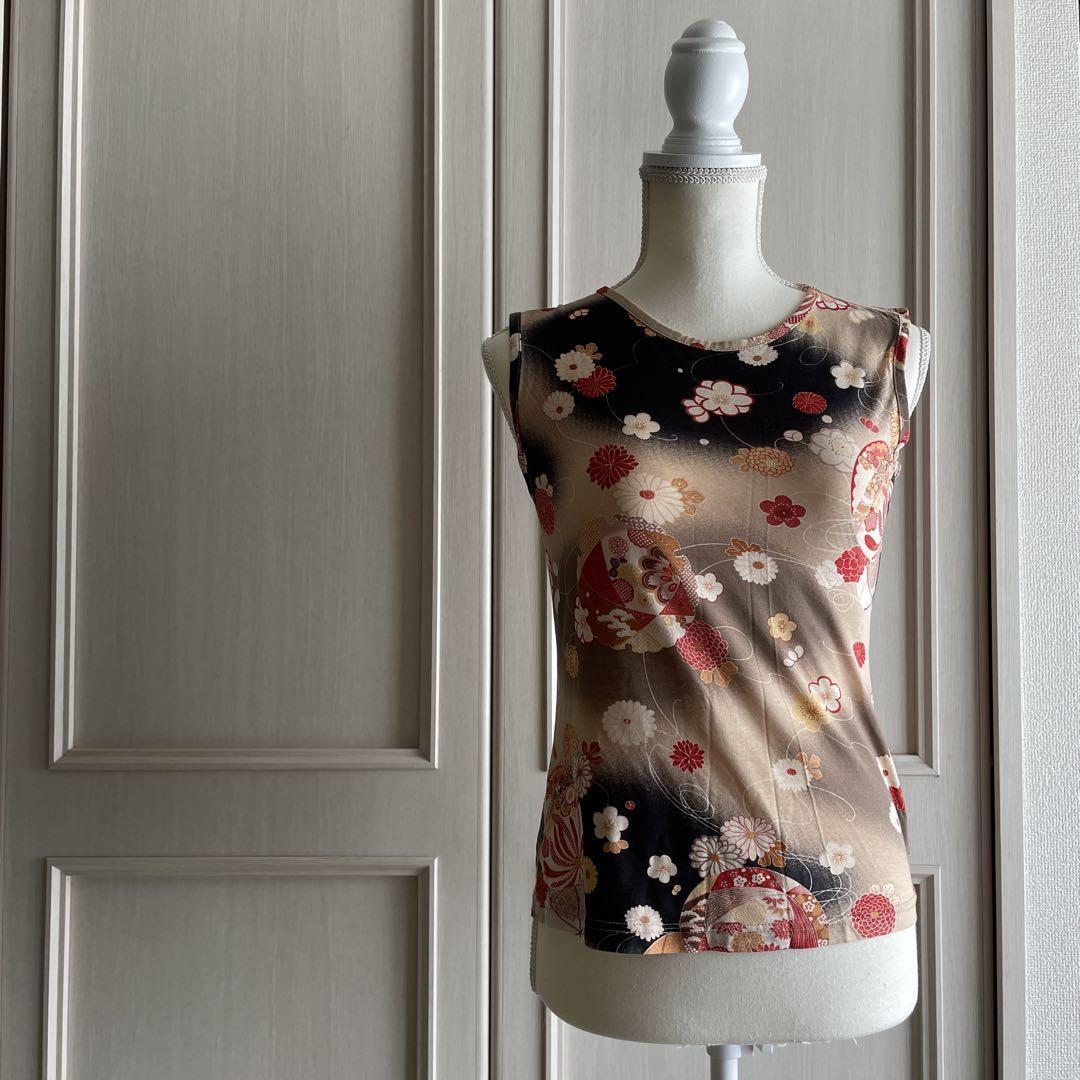 35 和柄 ノースリーブ 手毬 pagong シャツ 和装 ブラウス 花柄 総柄