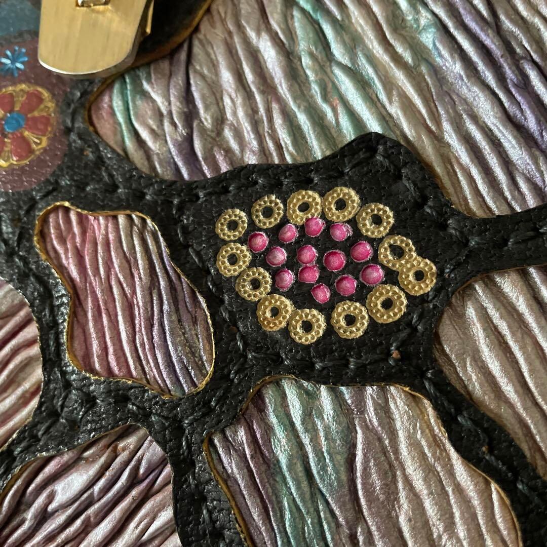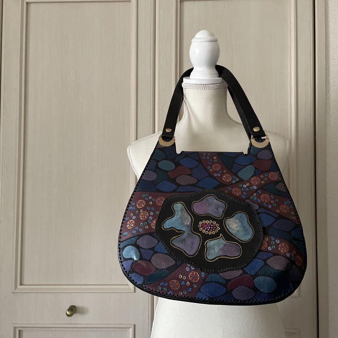 花柄 バッグ 総柄 ドット 本革 レザー leather bag 一点もの