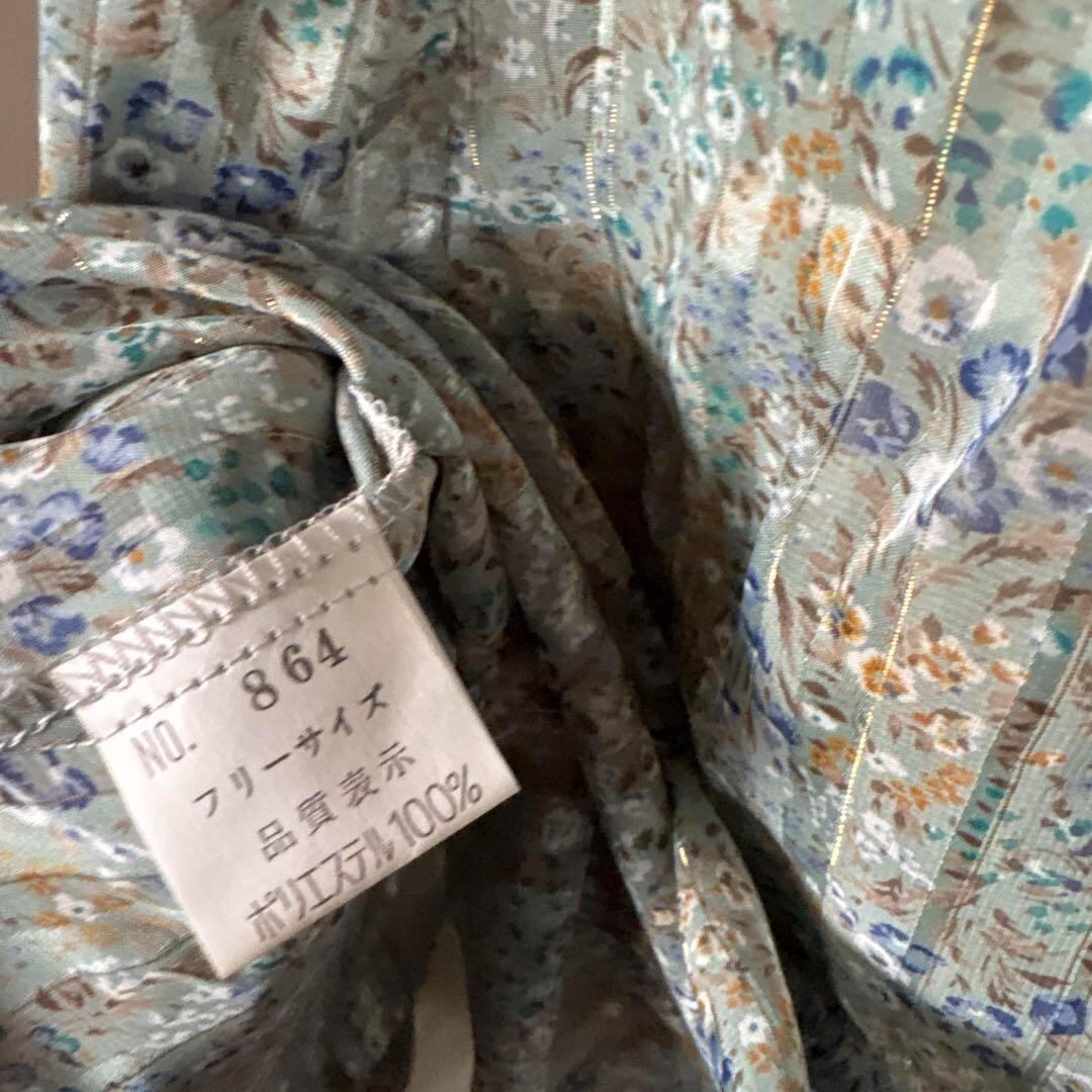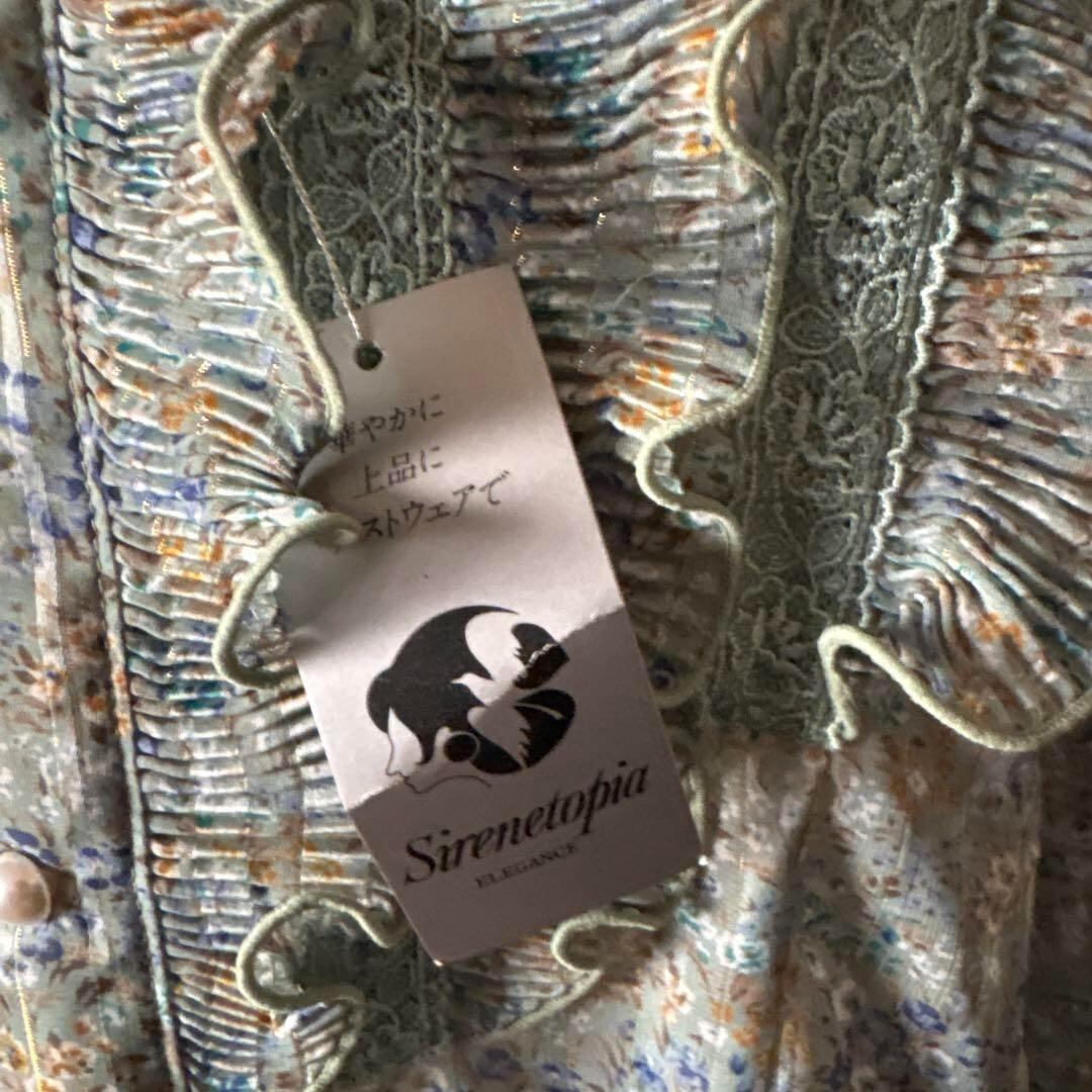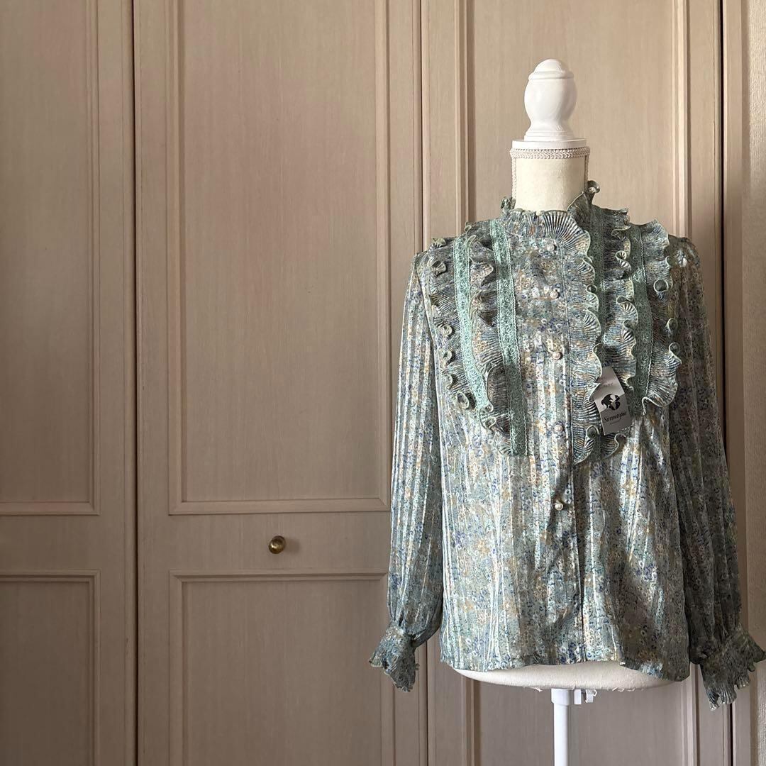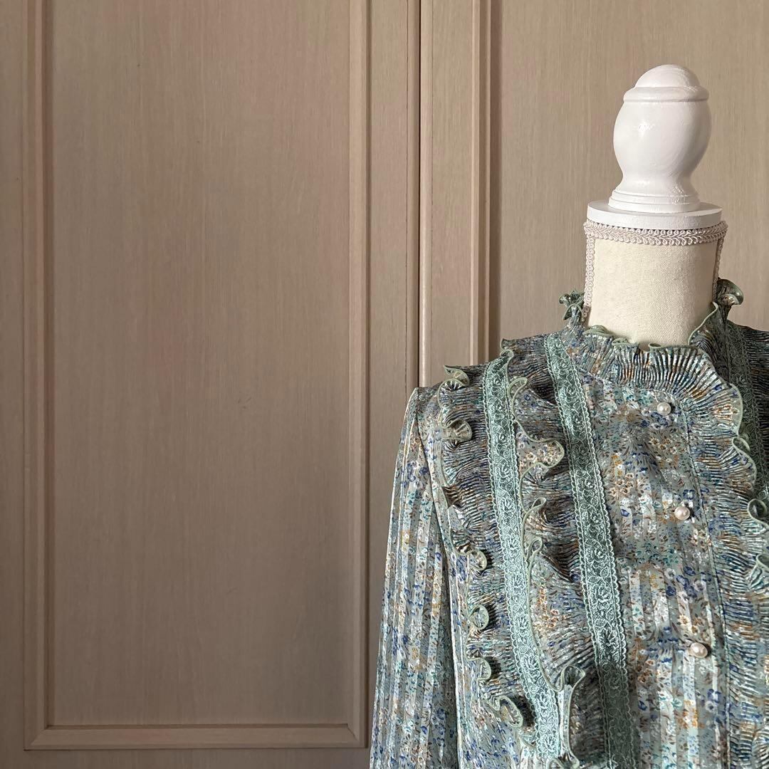40 花柄 レトロ フリル プリーツ ハイネック ブラウス シャツ レース 透け