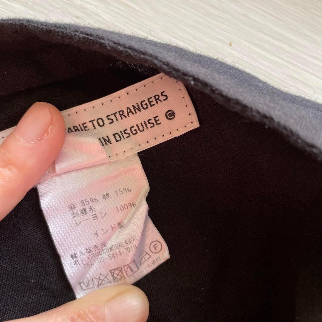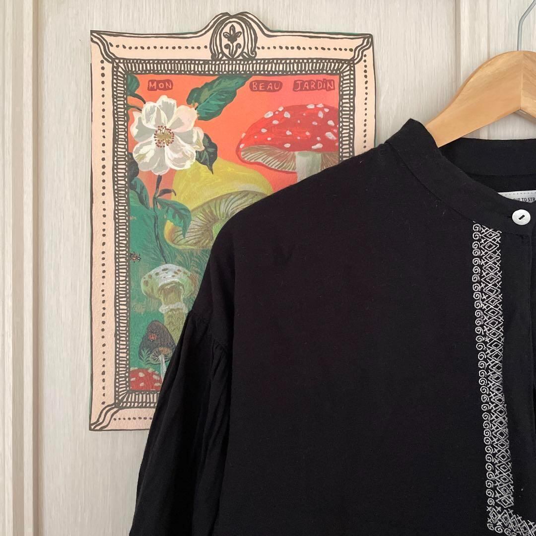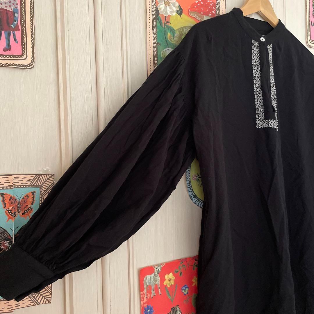 63 リネン 麻 ワンピース ロング 黒 刺繡 花柄 長袖 Linen