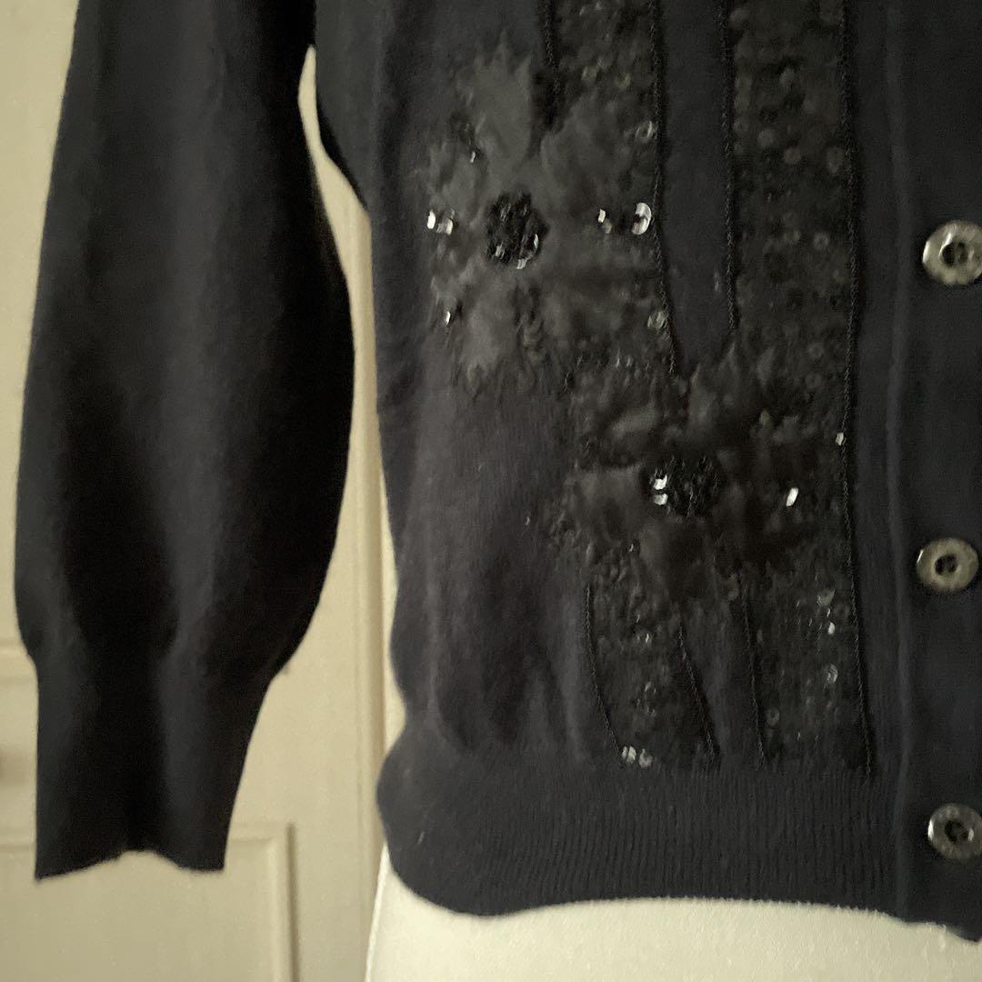 14 セリーヌ CELINE カーディガン スパンコール 花柄 カシミヤ