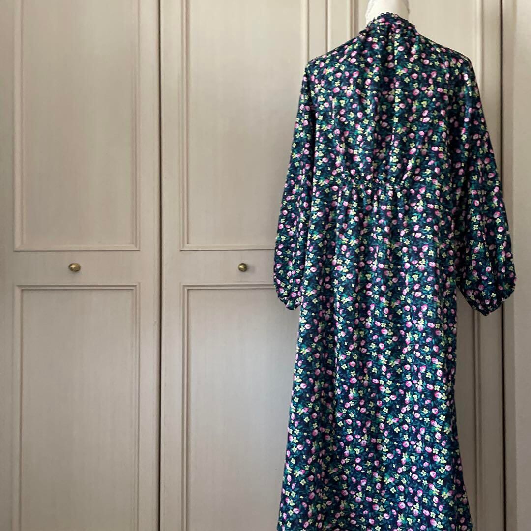 13 花柄 フラワー ワンピース シャツ ロング マキシ ハイネック フリル