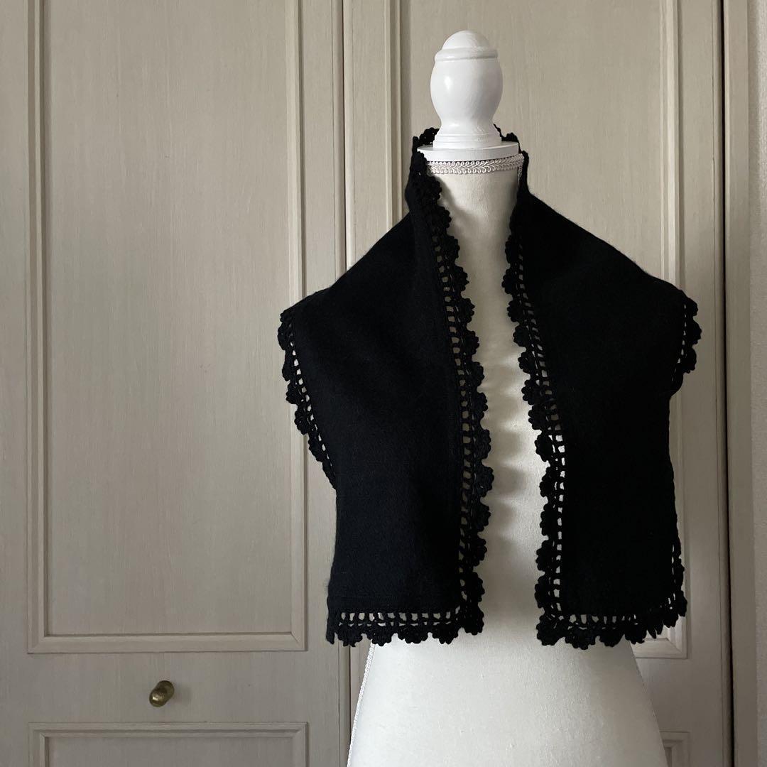 / カシミヤ カシミア ストール レース 可愛い 黒 美品