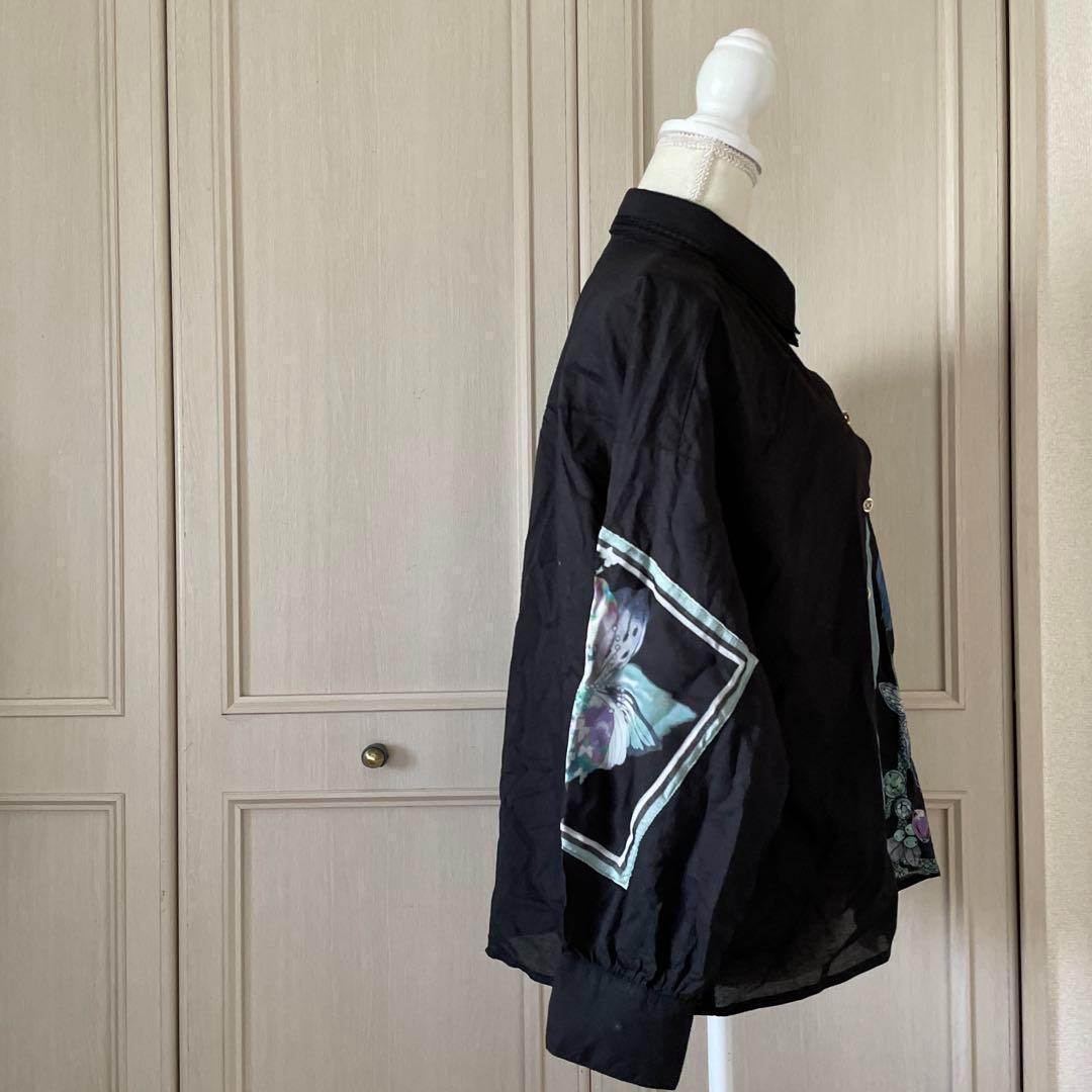 39 スカラー ScoLar 総柄 花柄 ブラウス シャツ トップス ブラック