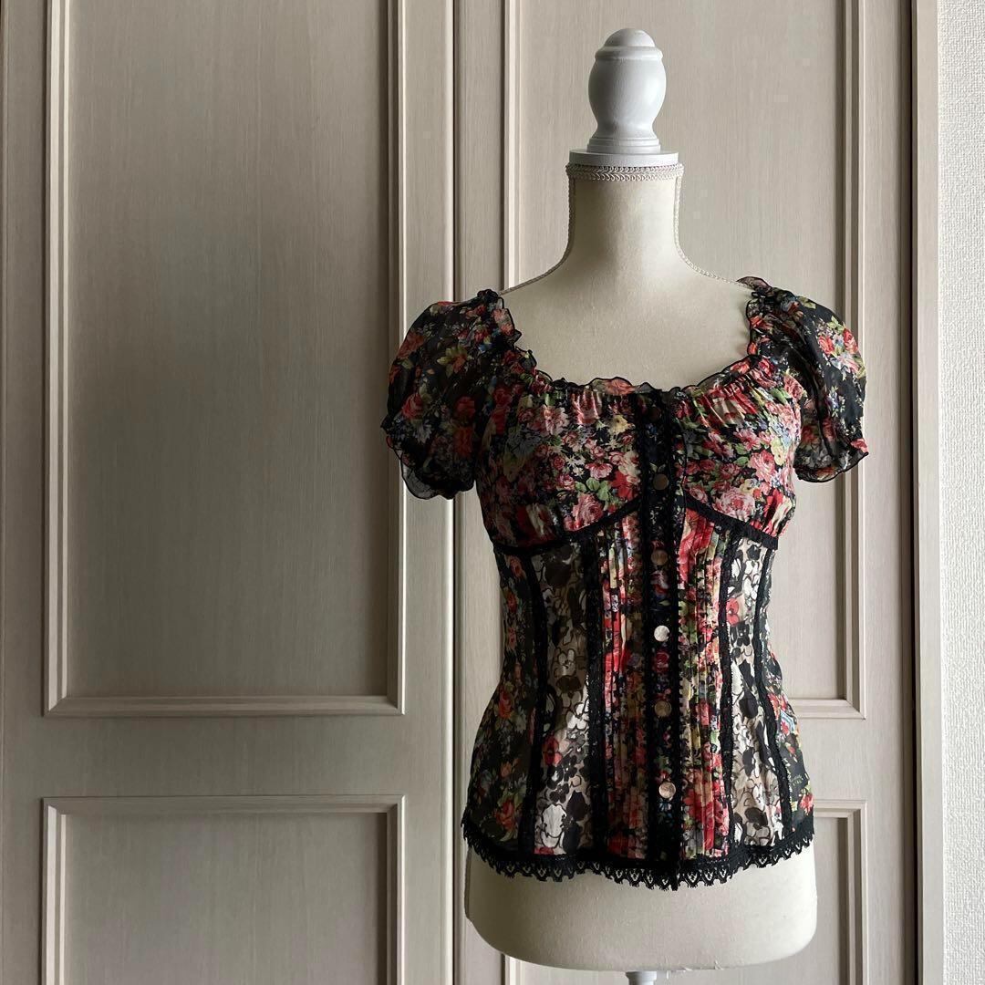 35 Rossa 半袖 花柄 フラワー ブラウス シャツ ロリータ シアー