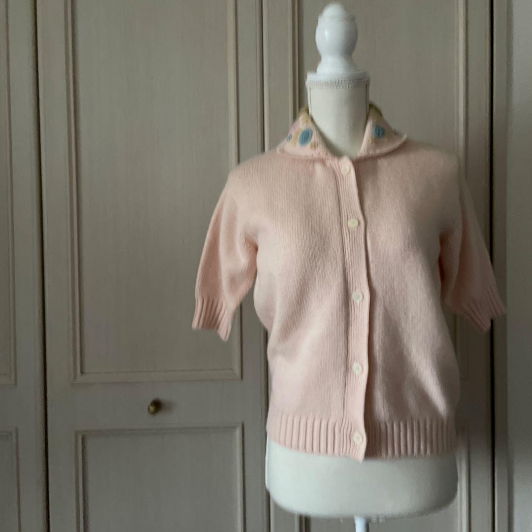 48 miumiu ミュウミュウ 刺繍 花柄 ニット セーター 丸襟 ピンク