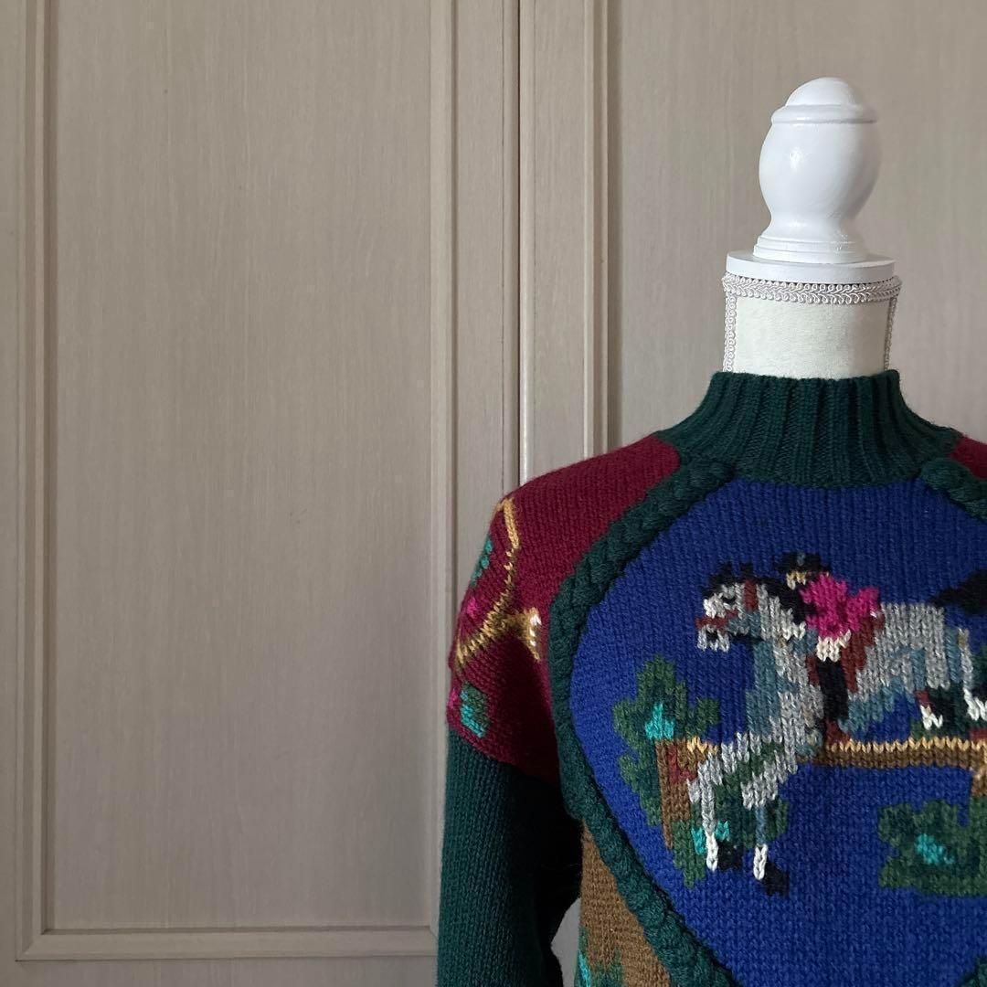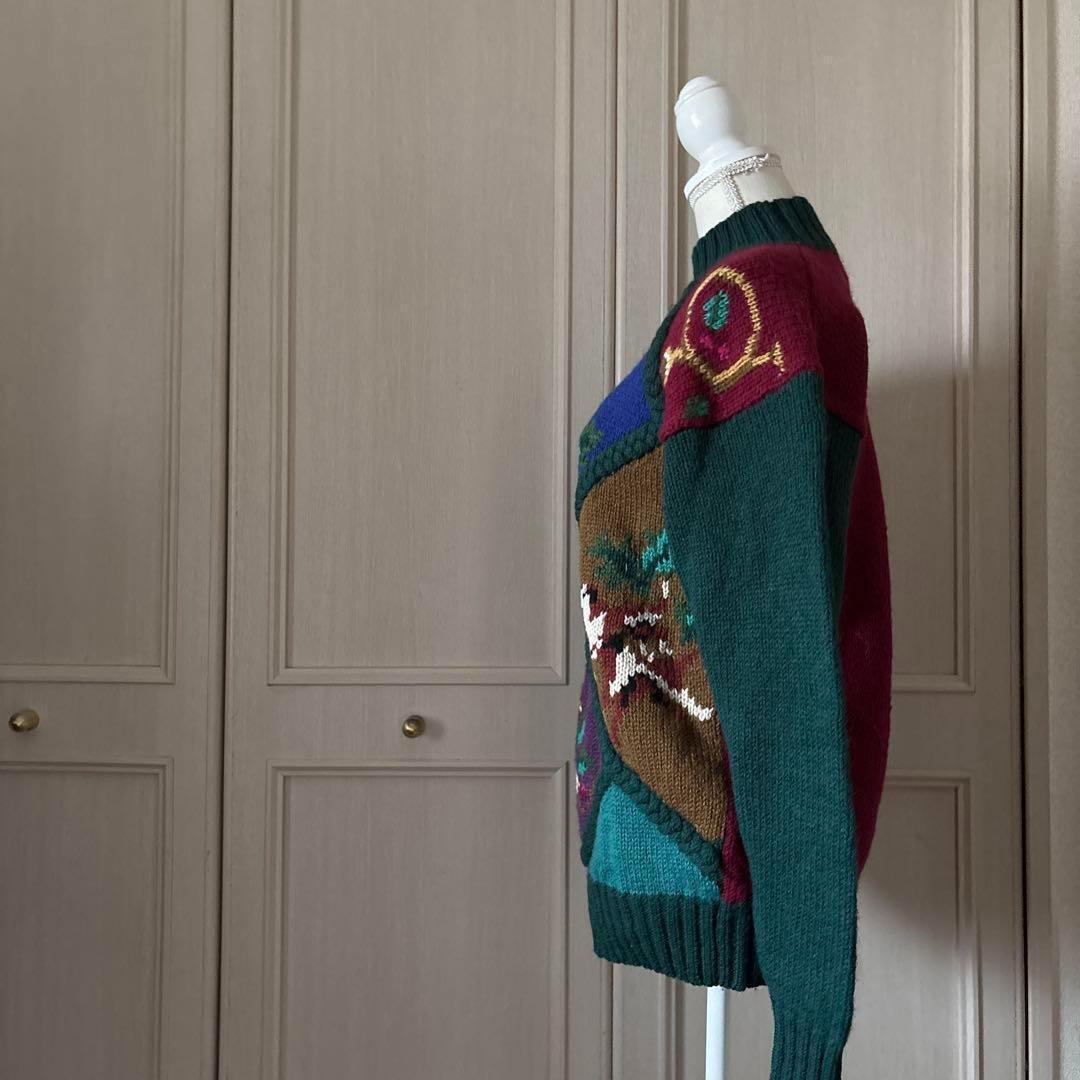 45 総柄 刺繍 ニット セーター 長袖 かわいい 昭和 レトロ vintage