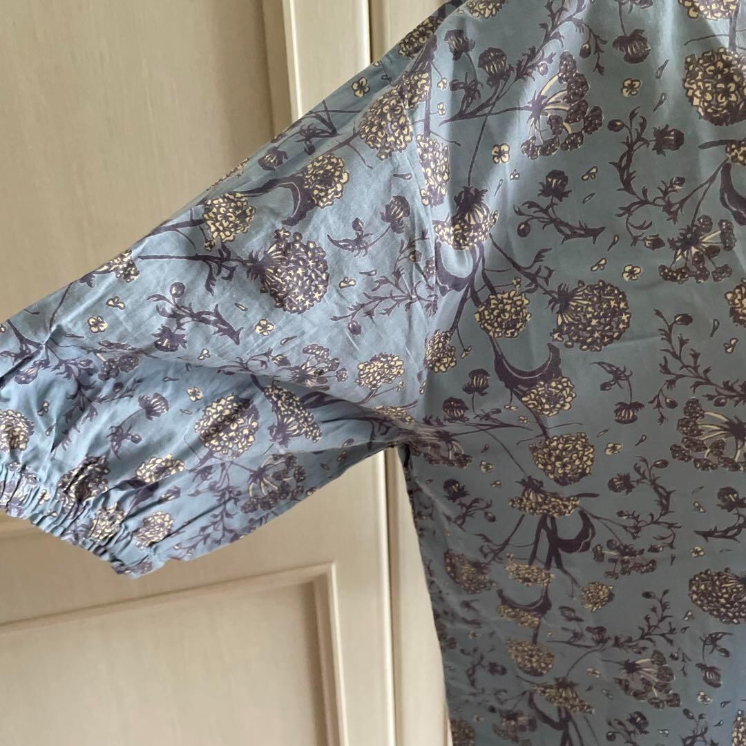 22 花柄 フラワー ブラウス シャツ 半袖 ナチュラル 半袖 ブルー 青