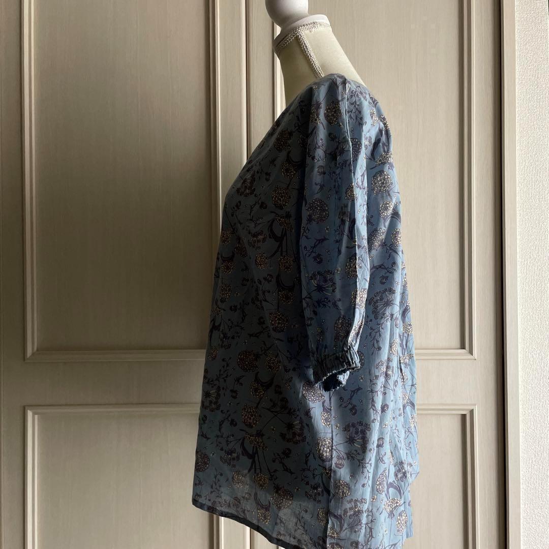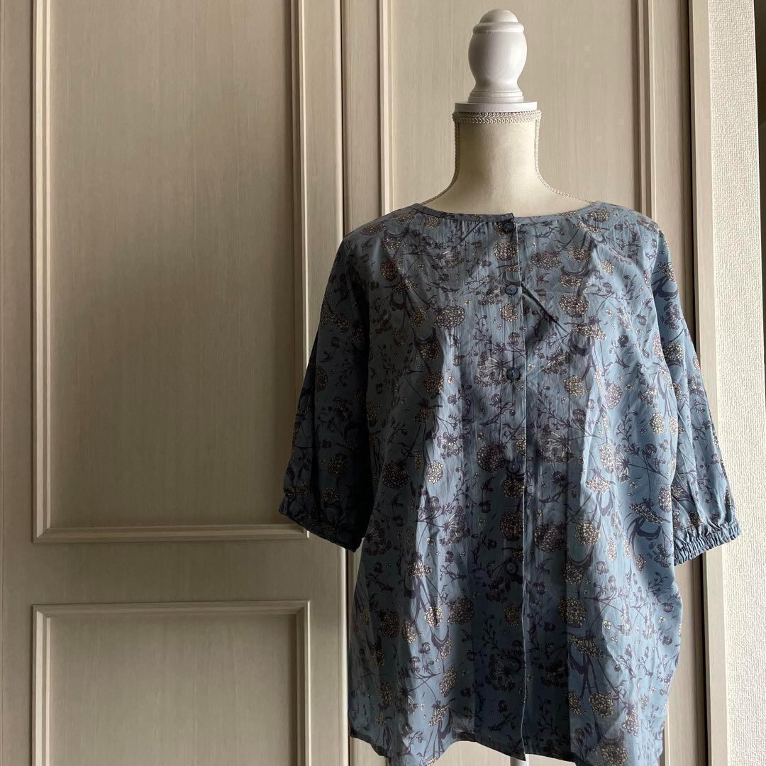 48 花柄 ブラウス シャツ 半袖 ナチュラル 半袖 ブルー 青 XL LL