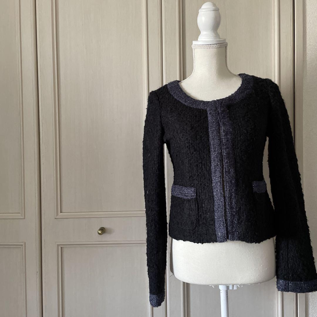 39 ストラ stola. ツイード ニット スーツ ジャケット ノーカラー