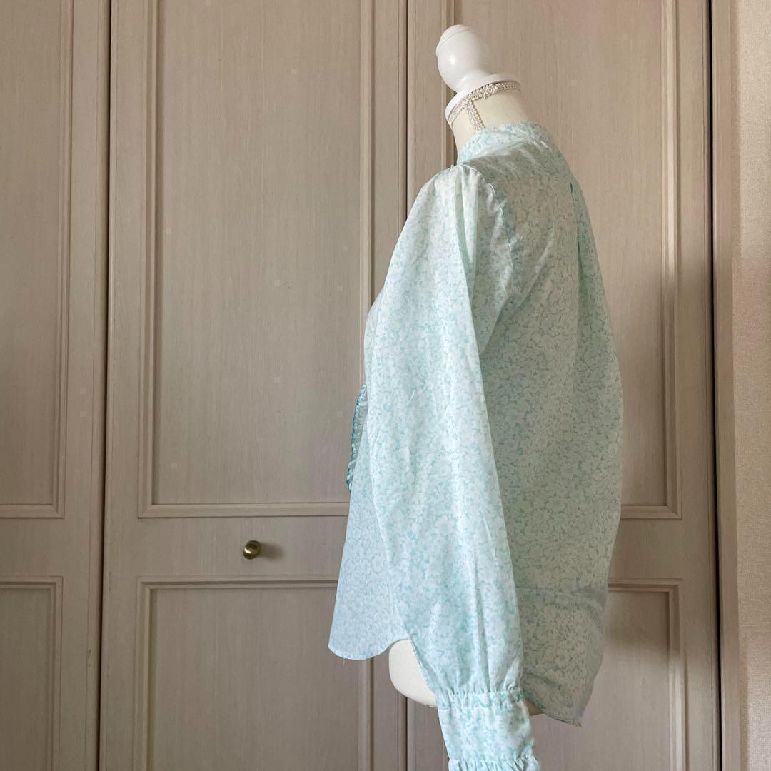 69 john mayer 花柄 総柄 ブラウス シャツ フリル 刺繡 長袖 青