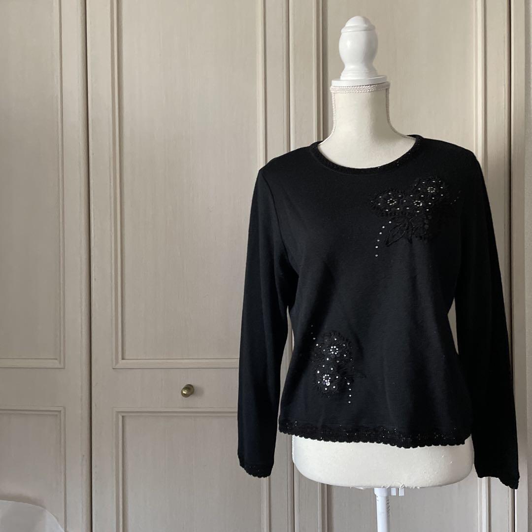 E 刺繍 花柄 総柄 ブラウス シャツ トップス 黒 ブラック カシミヤ