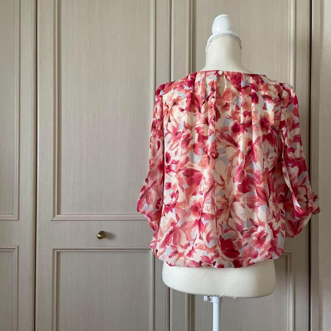 3 アドヴァンス advance 花柄 フラワー ブラウス シャツ シフォン