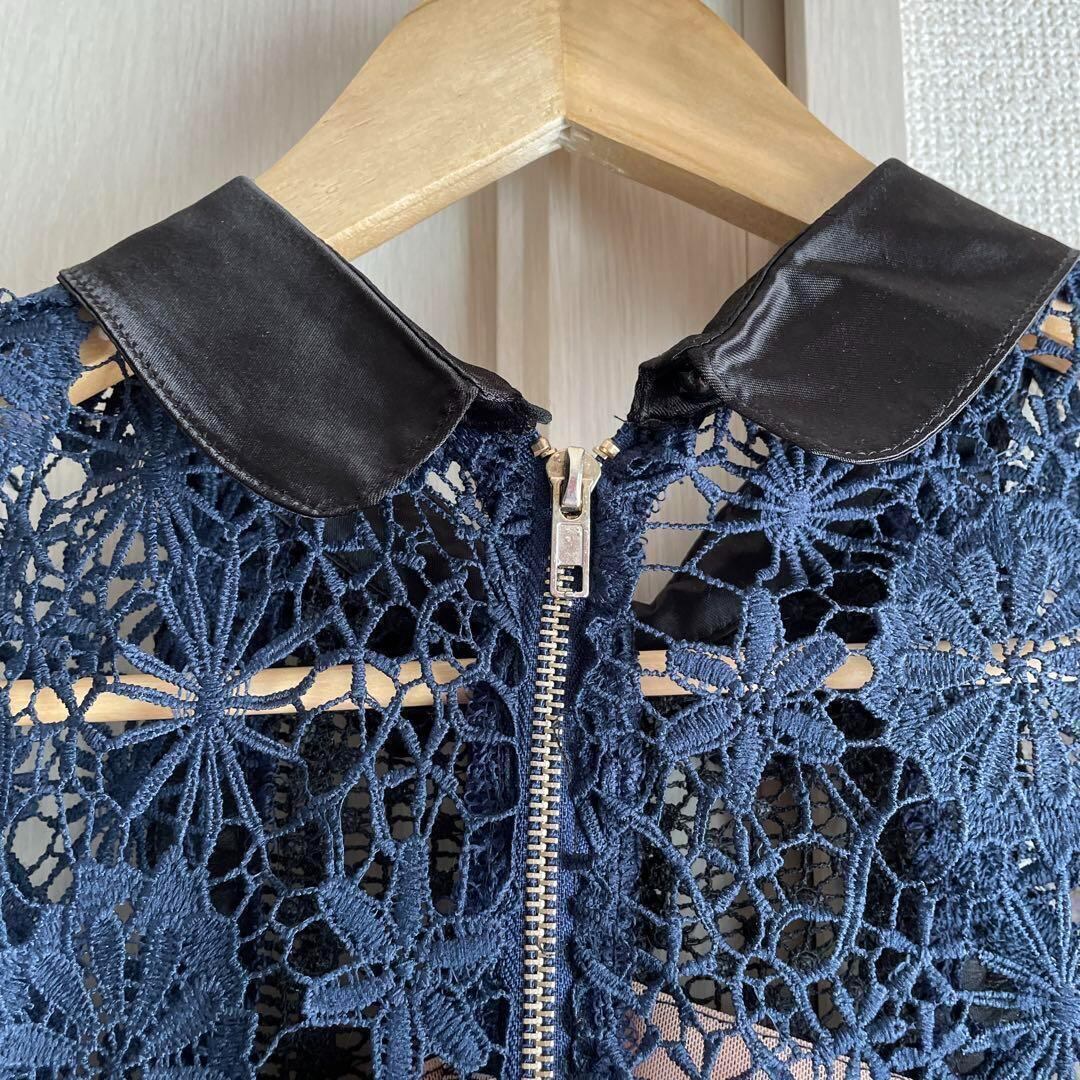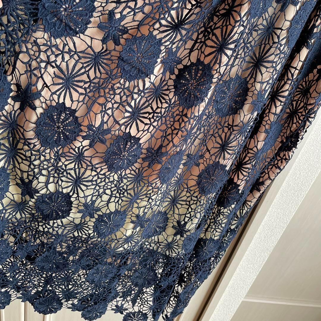 67 ワンピース レース 花柄 ロング 透け感 セクシー ネイビー 半袖