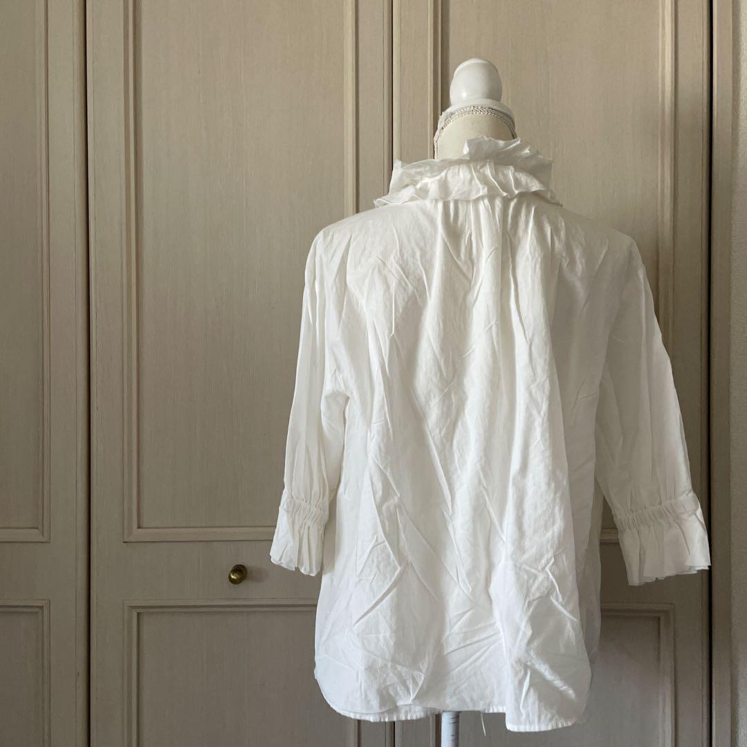 / フリル ブラウス シャツ トップス 無地 白 ホワイト