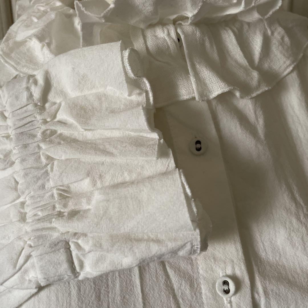 / フリル ブラウス シャツ トップス 無地 白 ホワイト
