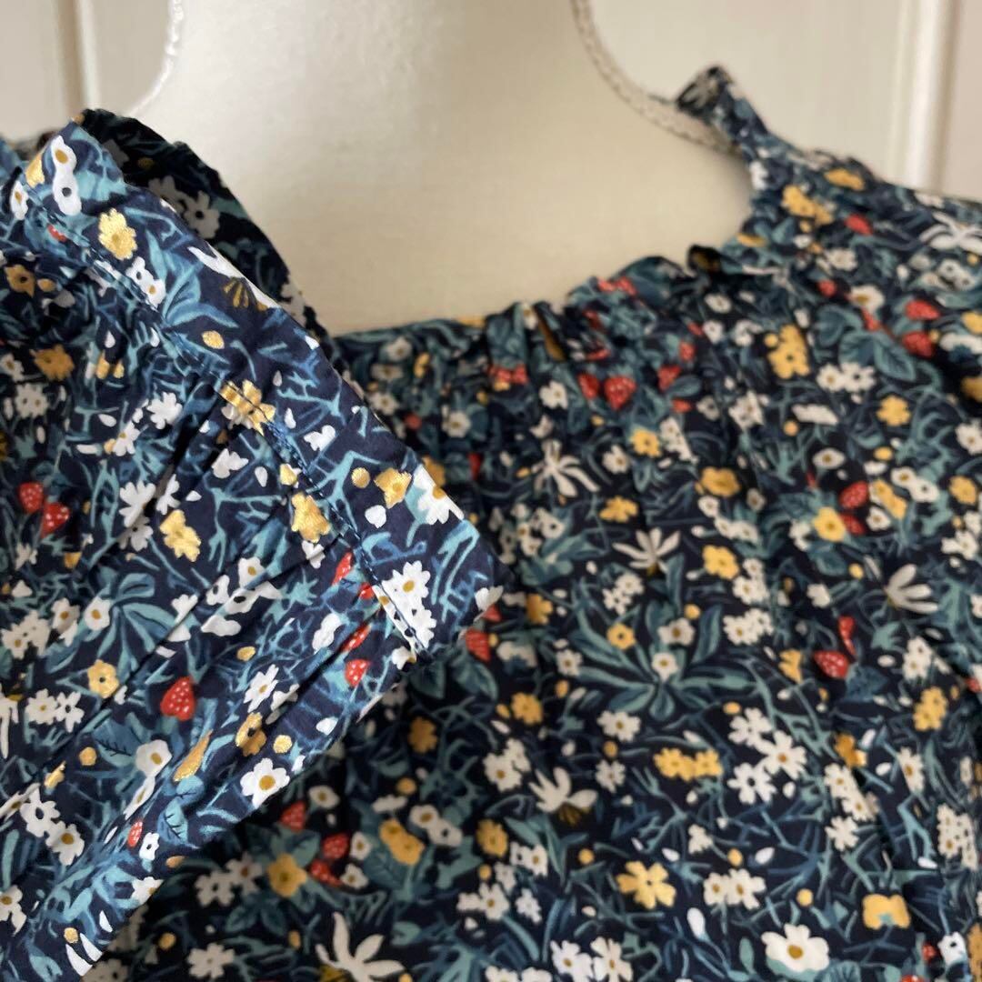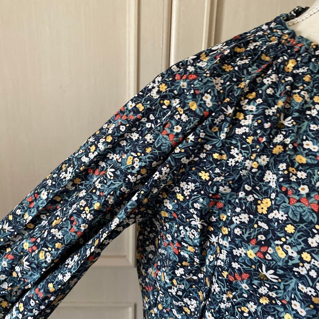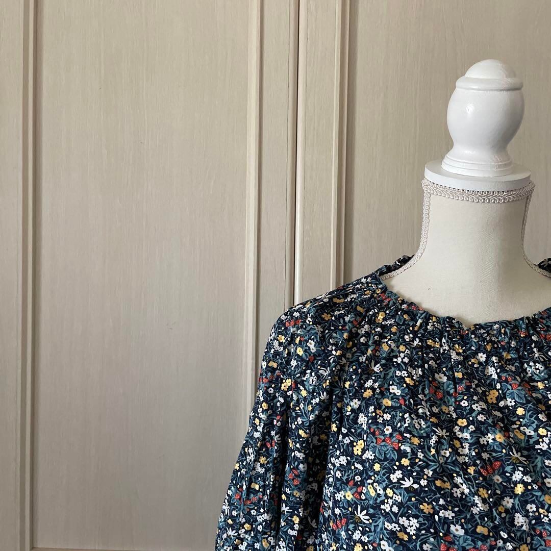 N 花柄 総柄 ブラウス シャツ トップス ナチュラル 青 長袖
