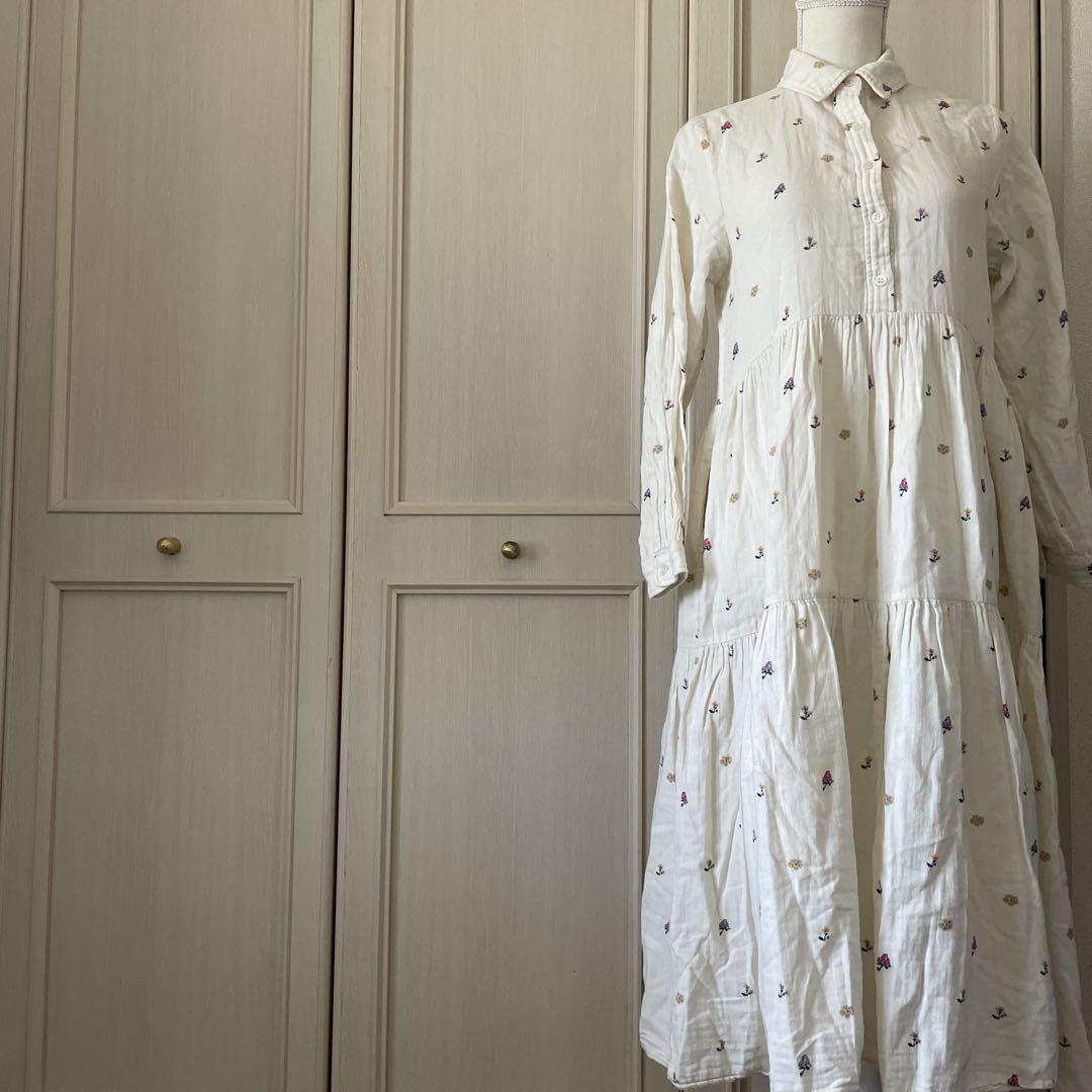 N nanadecor 花柄 ワンピース シャツ ロング ナチュラル ガーゼ